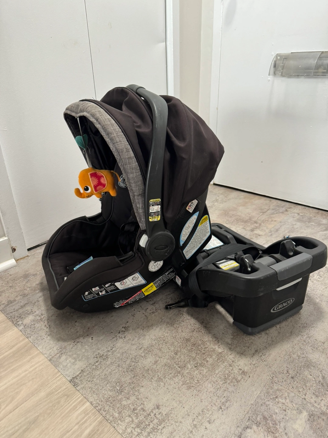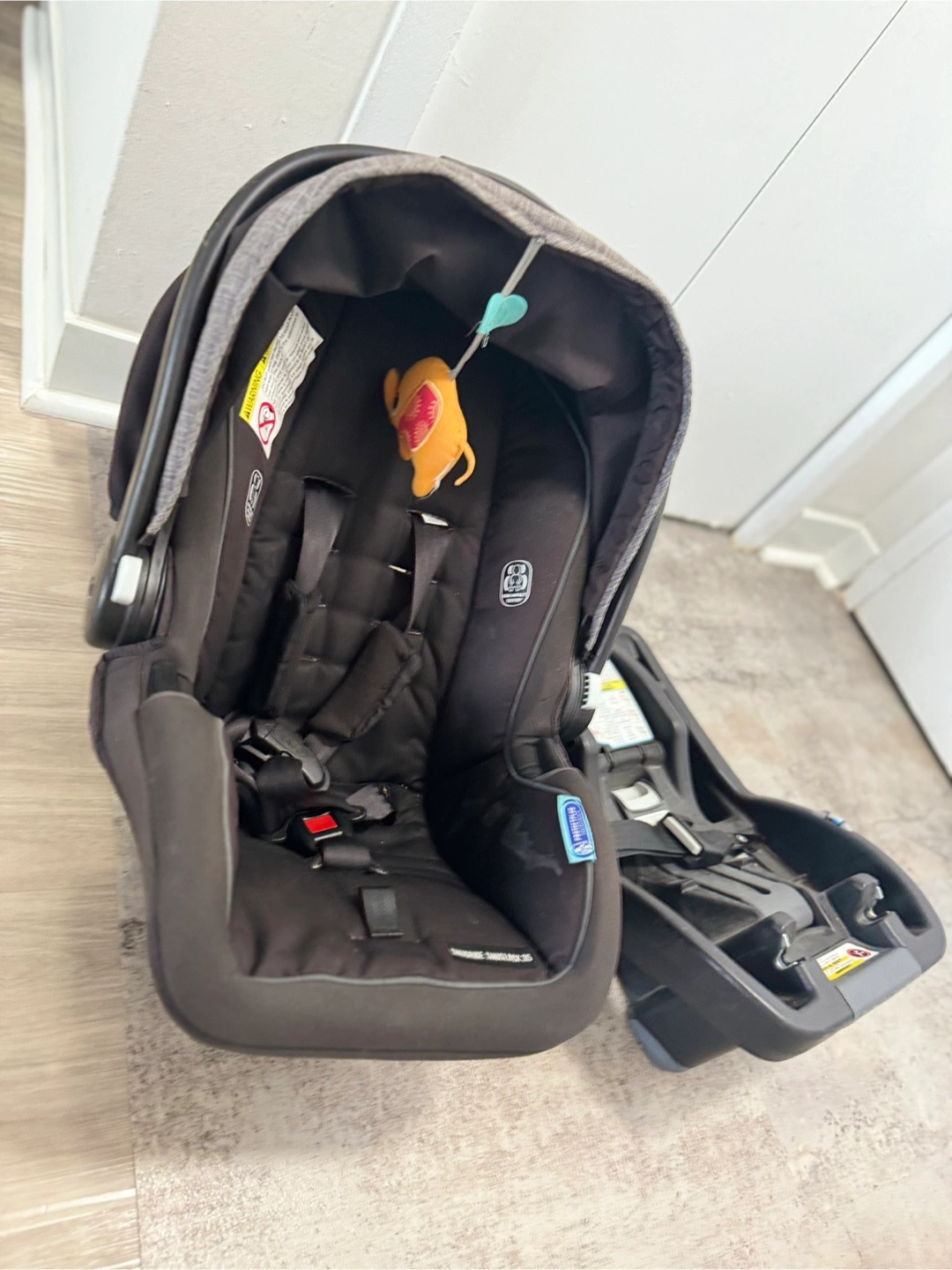 Selling a Graco SnugRide 35 infant car seat in great condition! This car seat comes with a base, making it easy to transfer between vehicles. Perfect for newborns and infants, providing a safe and comfortable ride. It's a reliable choice for your little one's travels!