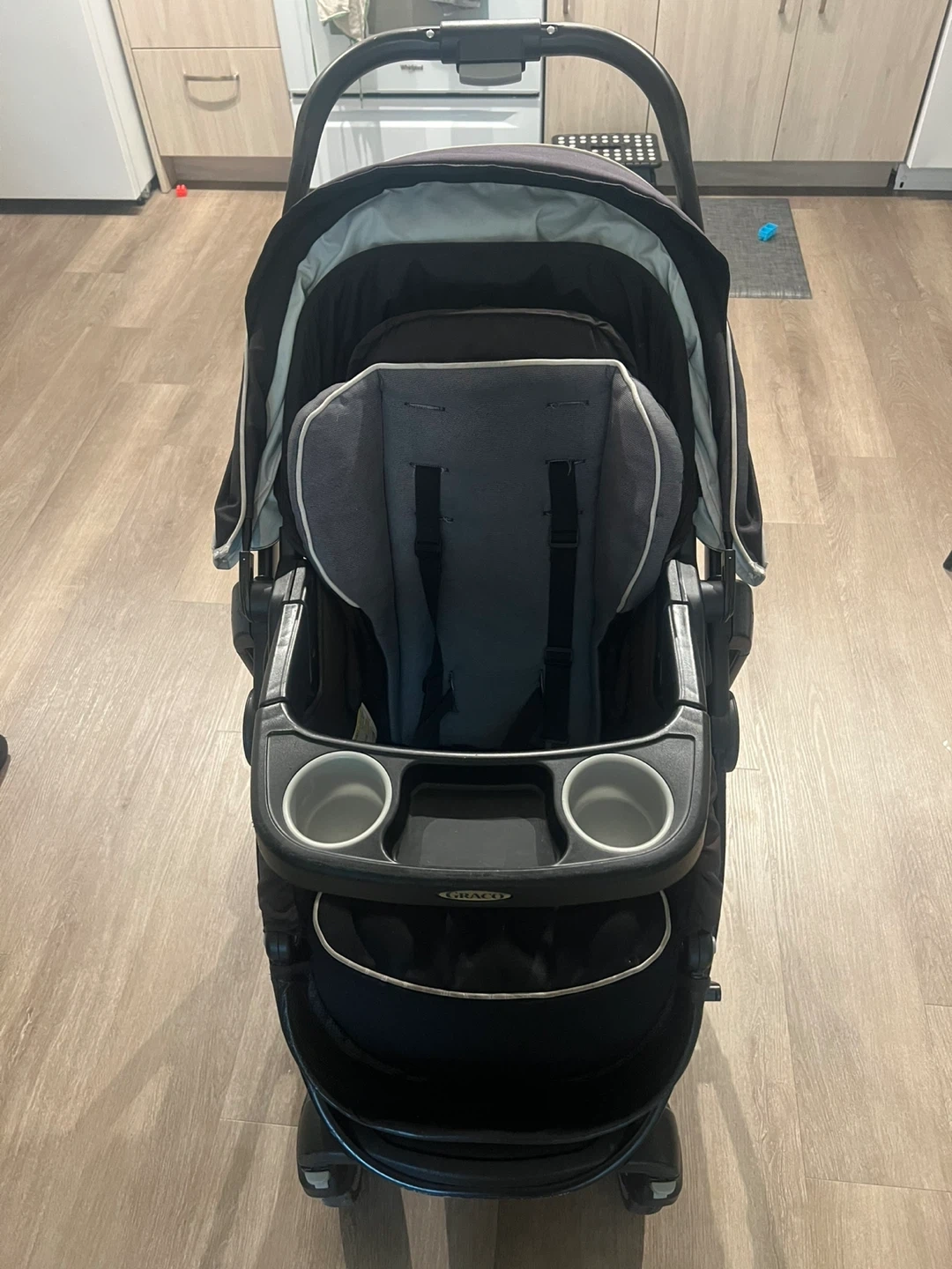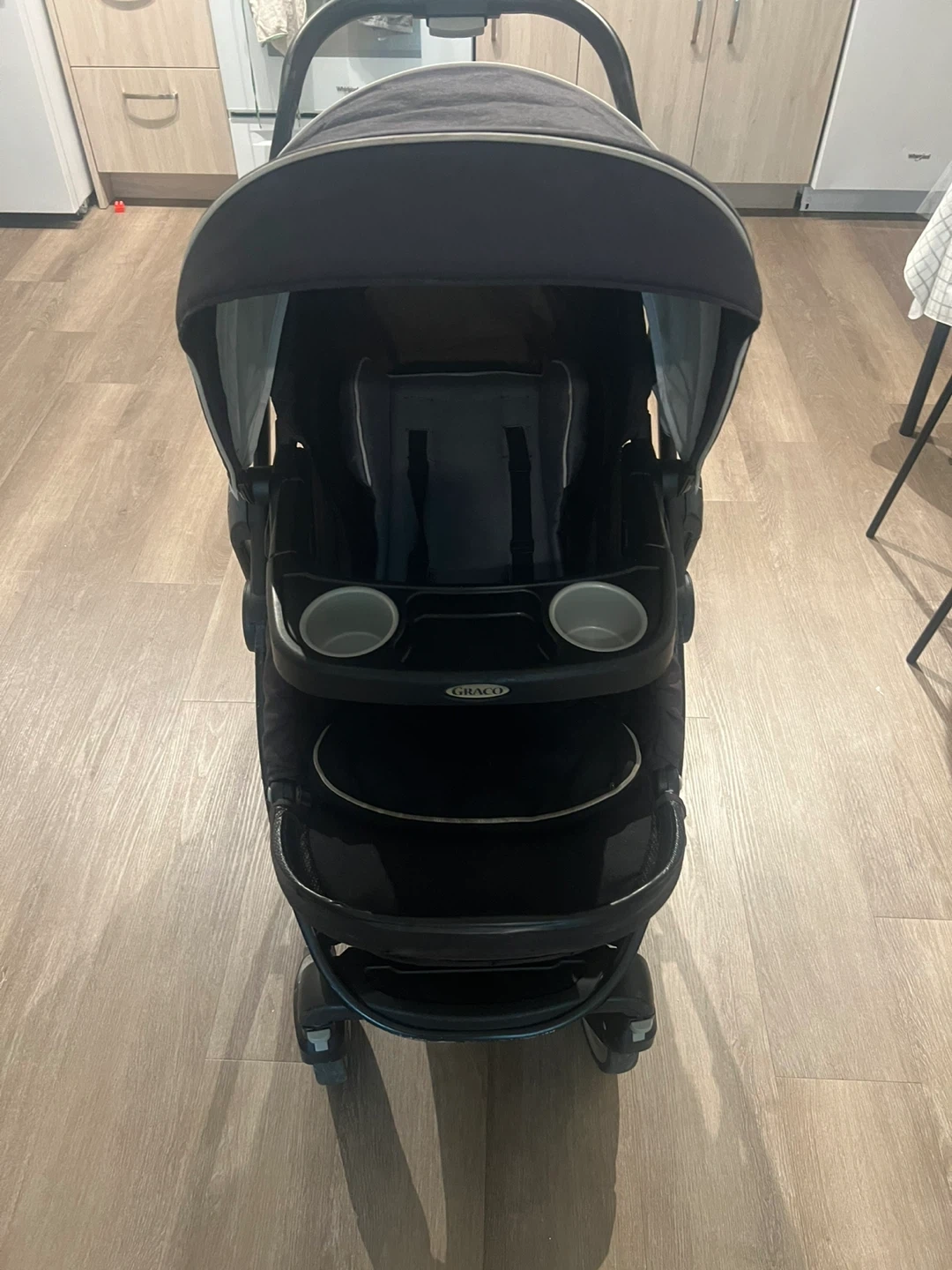 185Used Black Graco stroller in good condition. Seat can be used as bassinet and par table from frame. Age 0-4