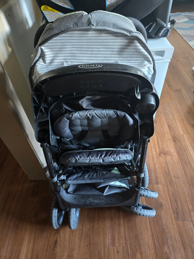 22Come with an extra gift (padding for a new baby). Used for a few months. Had to get a double as I have 2 babies. Can fold with one hand, very good for traveling, especially on international flights.