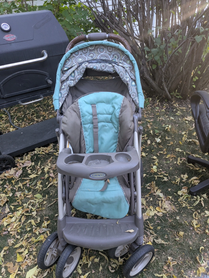 15Selling a Graco stroller! It's in good condition and ready for a new home. Perfect for taking your little one on walks around the neighbourhood or trips to the park. It features a convenient tray for snacks and drinks, making outings easier for both of you