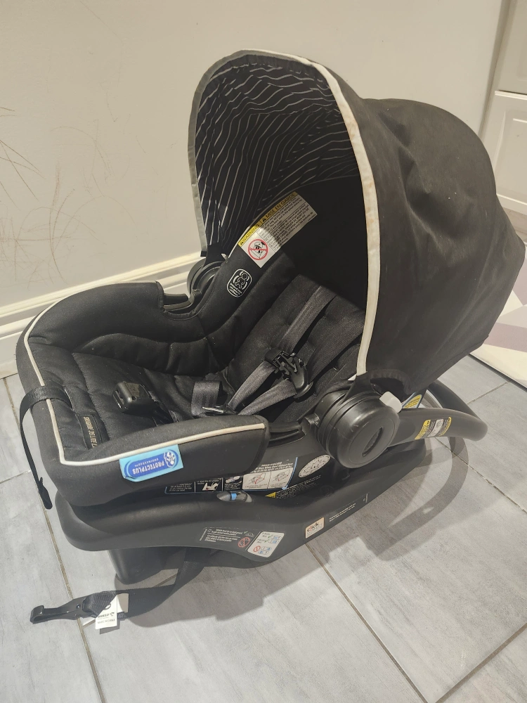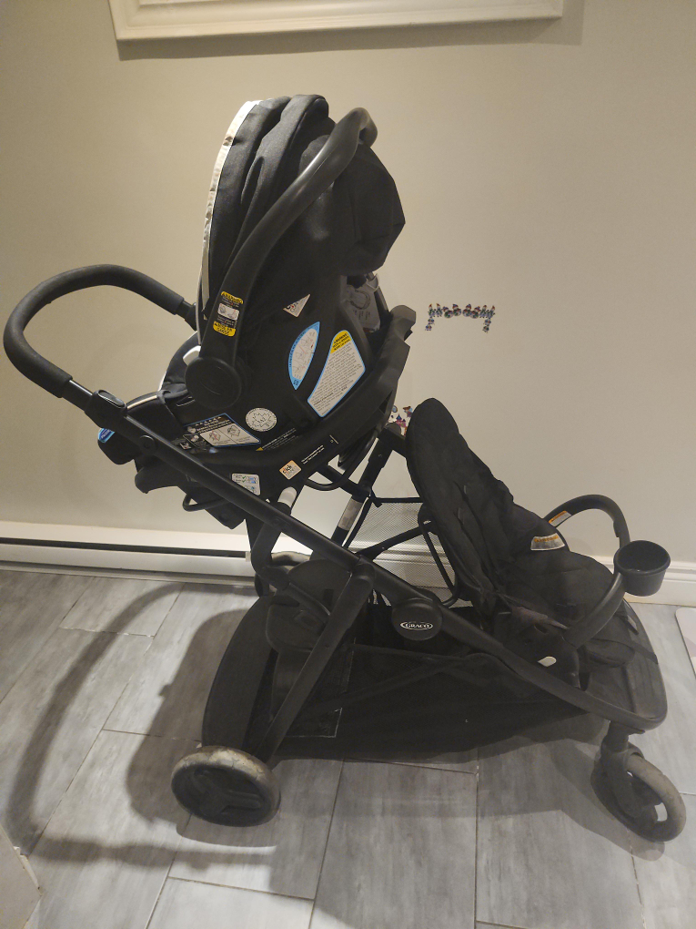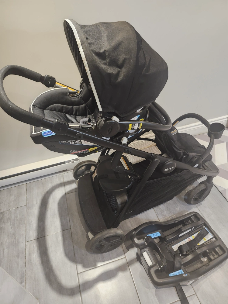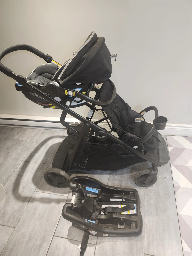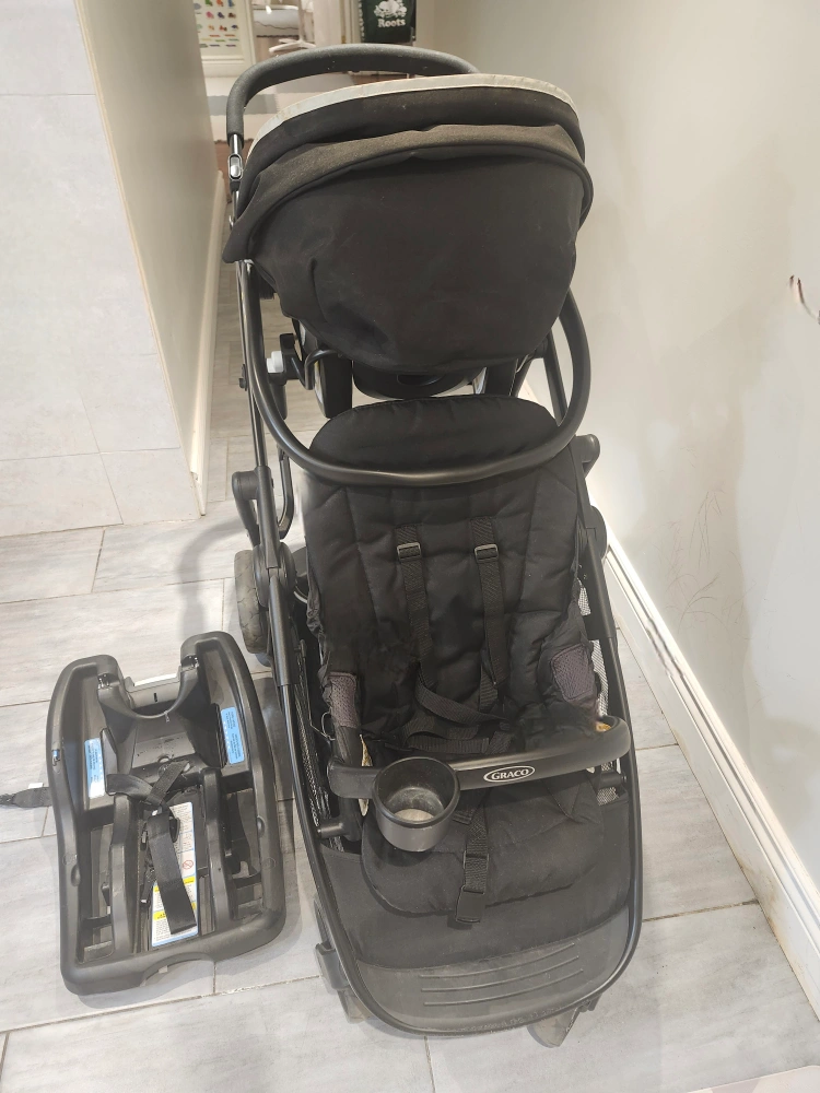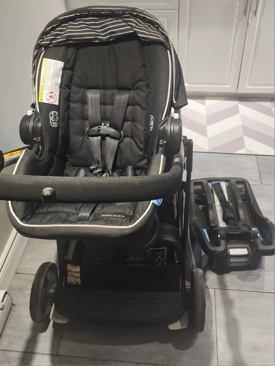 18A comfortable, stylish travel system. The stroller has a comfortable seat and includes an infant car seat and base. Consider taking this travel system for a stroll on a sunny day for a bit of fresh air and relaxation.