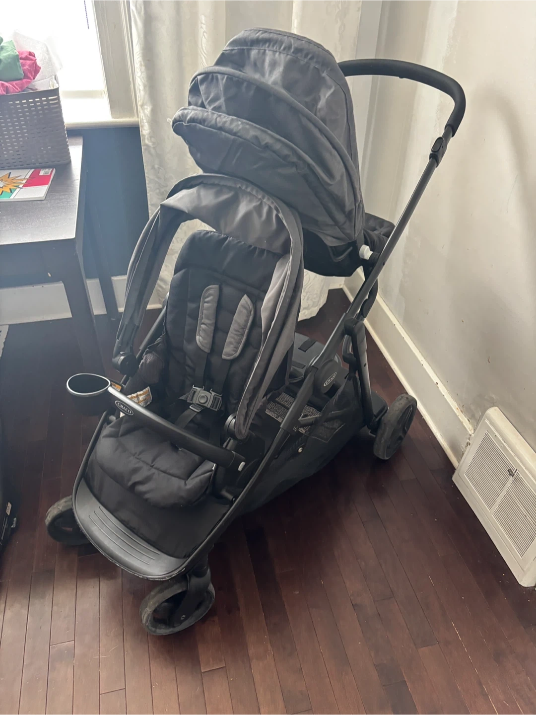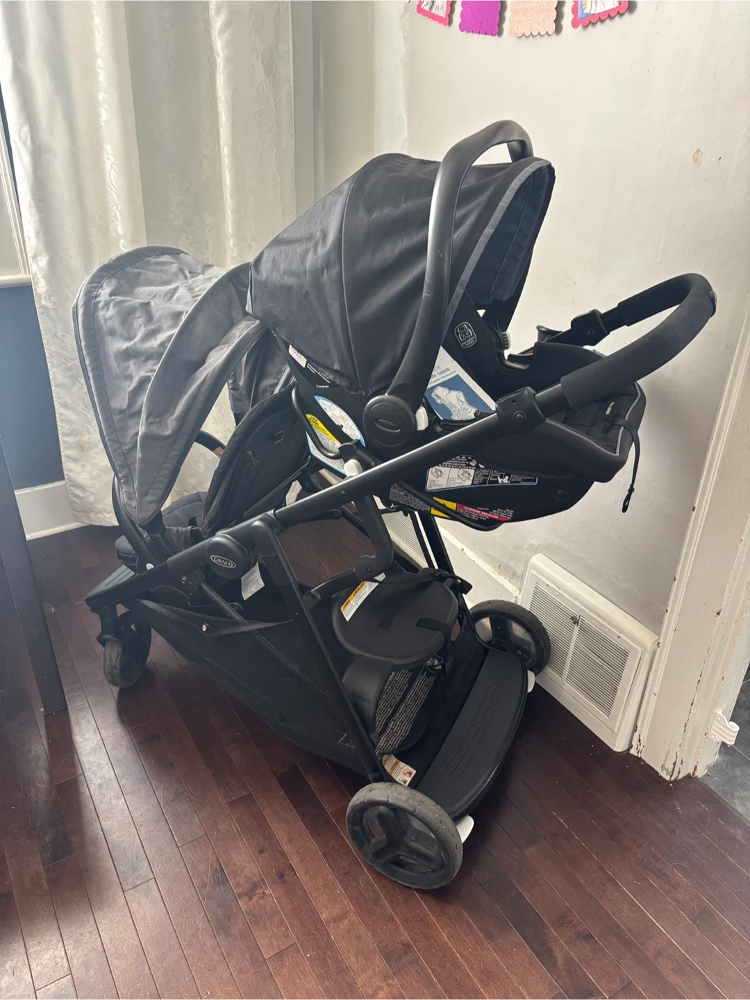 Selling a Graco travel system! It includes a stroller and an infant car seat. Hoping to sell altogether, Graco ready2grow 2.0 double stroller (purchased 2024), Graco snug ride 35 lite lx (2021) car seat and base , comes with stroller manual The car seats a little older (2021) but still in great condition, as is the stroller