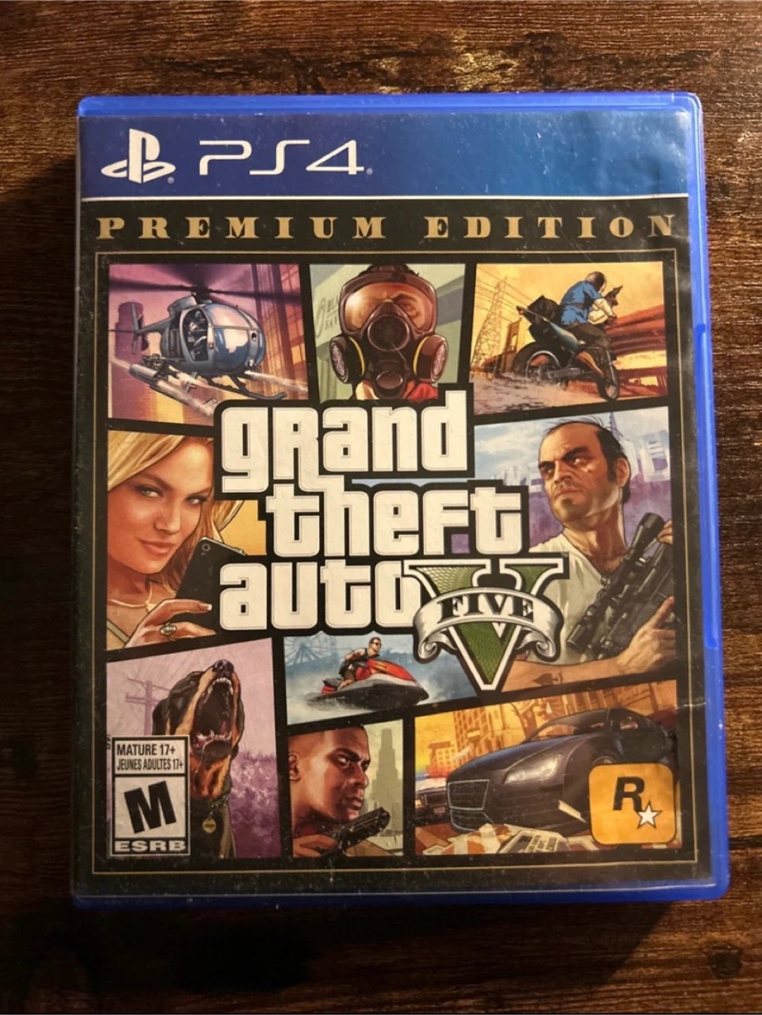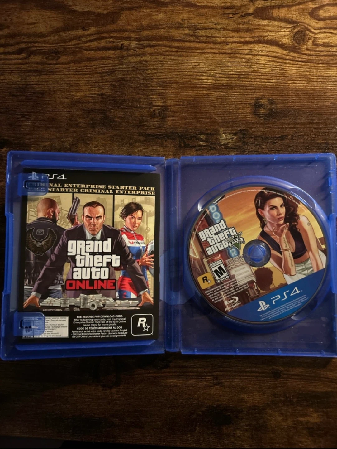 Selling a used copy of Grand Theft Auto V for the PlayStation 4 (PS4). Rated Mature 17+ by the ESRB. Disc only