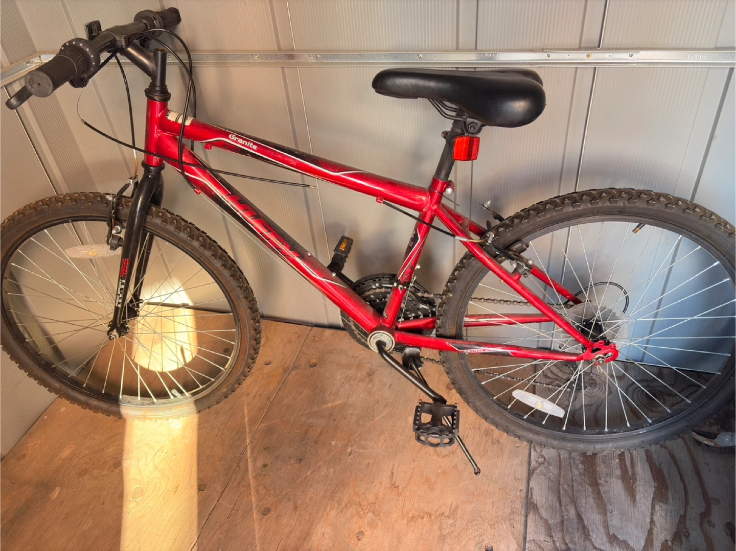 60Selling a Granite mountain bike in red and black. It's in good condition and ready for some off-road adventures!