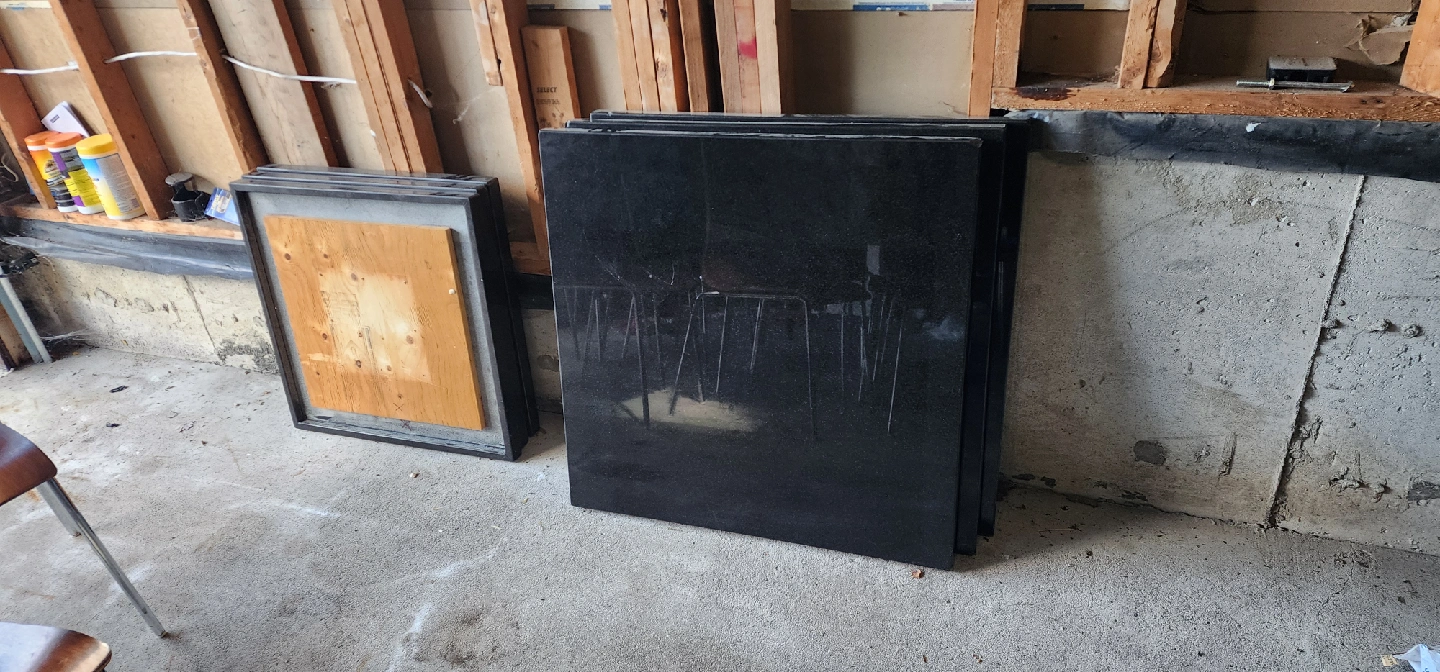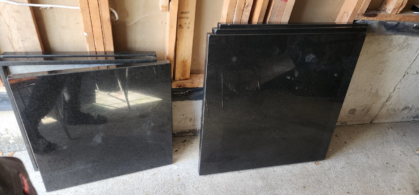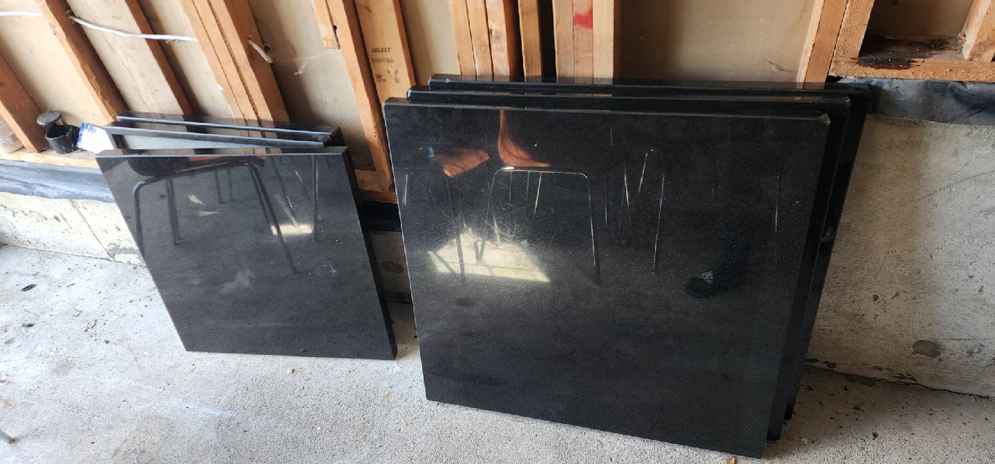 116Selling some black granite slabs. They'd be great for a variety of projects. Come take a look! #10 tables without base size 33x33 inch # 3 tables without base size 26x26 inch asking for $400 for everything location CALEDON cash 💸 only