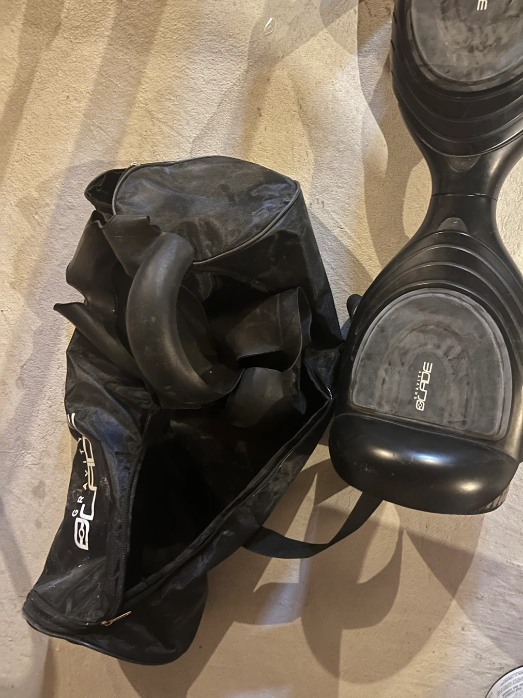 Selling a Gravity Blade hoverboard. It's black and comes with a carrying bag for easy transport. Great for getting around! Comes with case, just needs a nice wash and it’ll be amazing! Good for the house and outside, trades are accepted shoot your shot!