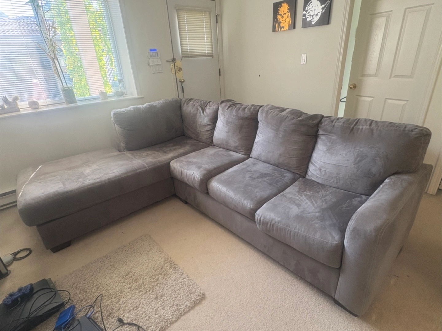 60Selling a comfortable gray sectional sofa. It features a chaise lounge for extra relaxation. The sofa is in good condition and ready for a new home! Must pick up in Hastings-Sunrise neighborhood.