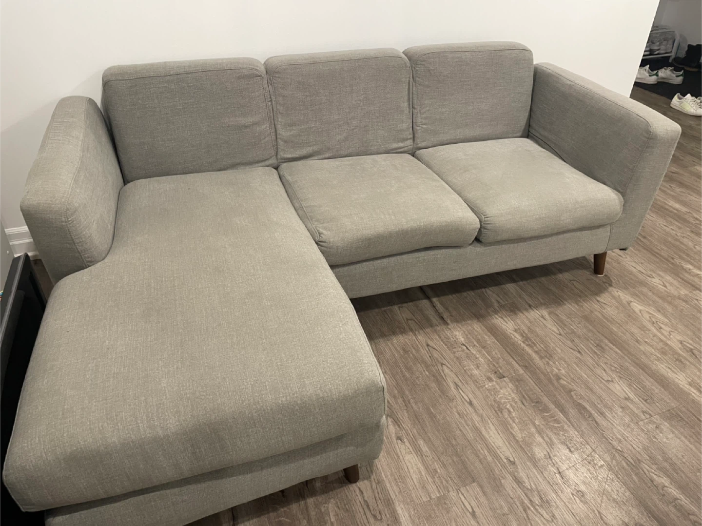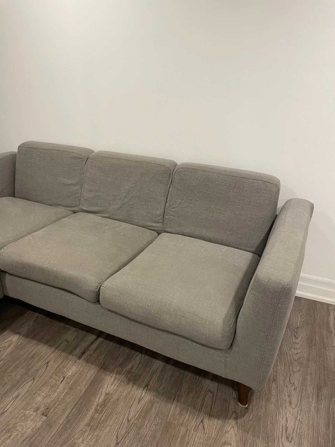 127Selling a comfy gray sectional sofa! It features a chaise lounge for extra relaxation that can be used on either side. Measurements: - The sofa is approximately 82 inches in length - The arm is about 31 inches wide It's in great condition and ready for a new home! ๐ dundas and Winston Churchill