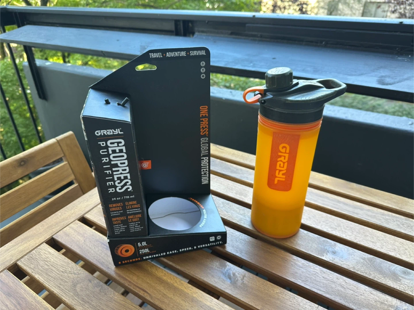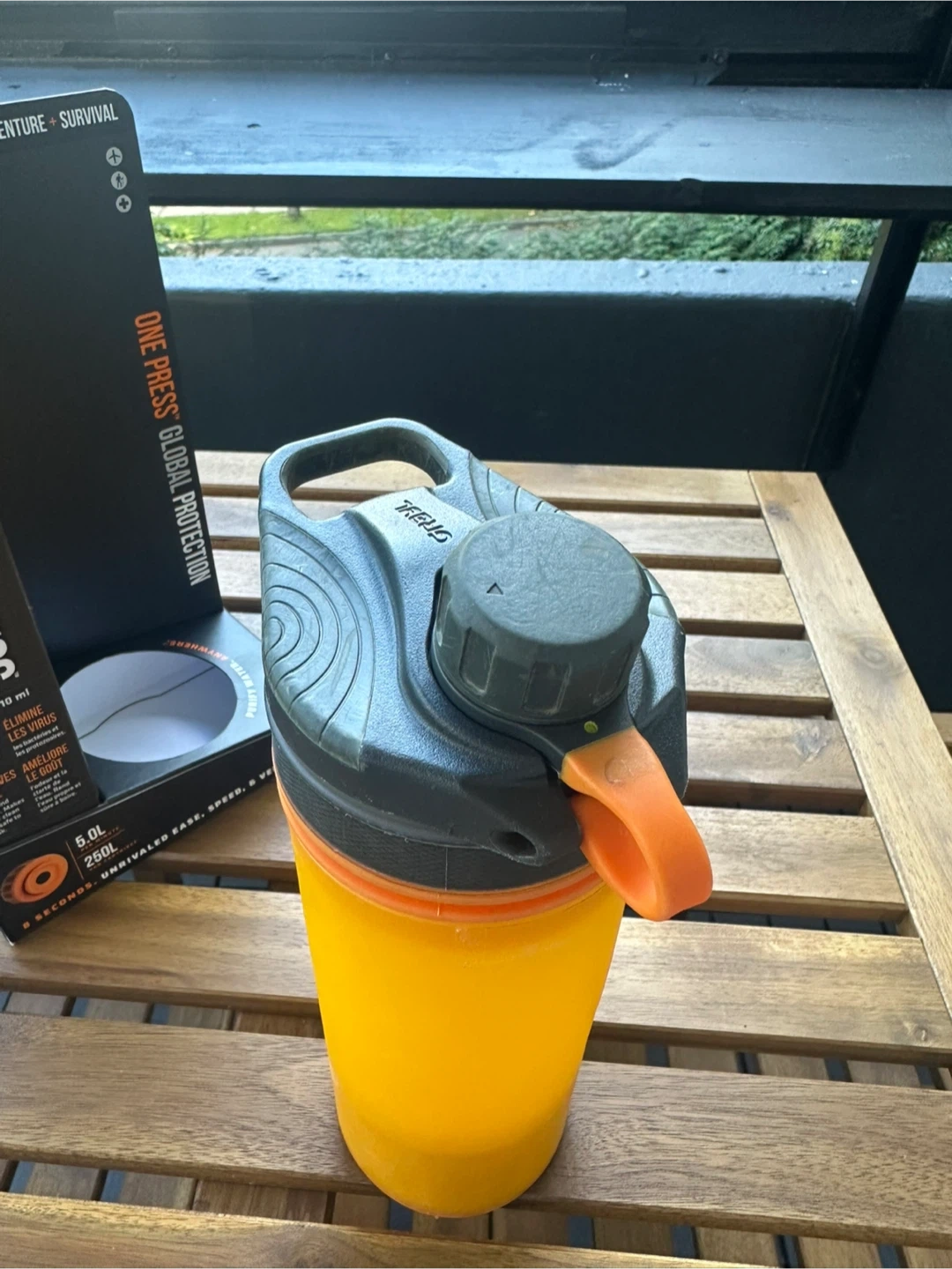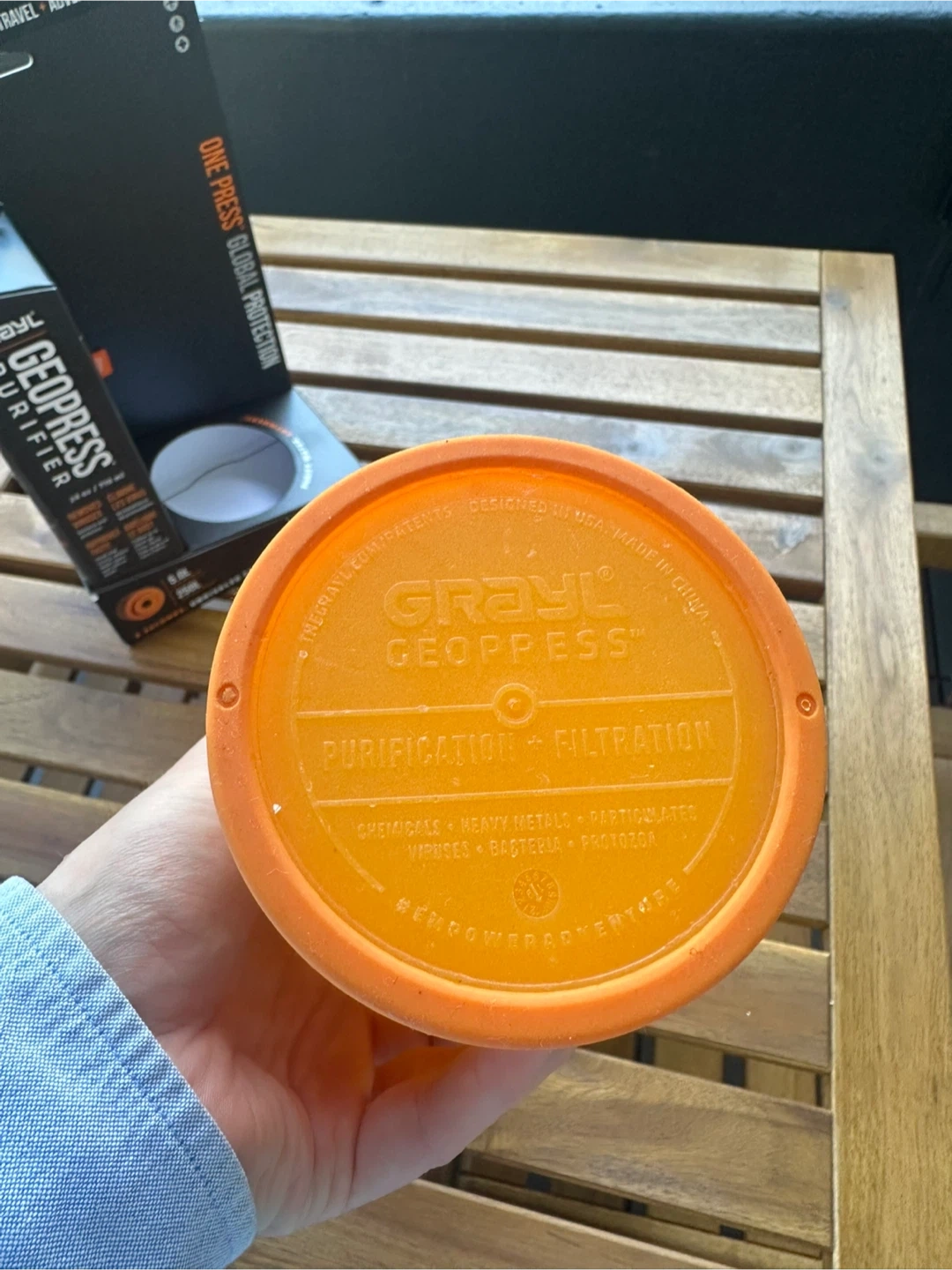 65Selling a Grayl GEOPRESS water purifier in orange! It removes viruses and improves the taste of your water. It has a 24oz / 710 ml capacity and filters 5.0L in 8 seconds. The box is included. Retail $140.