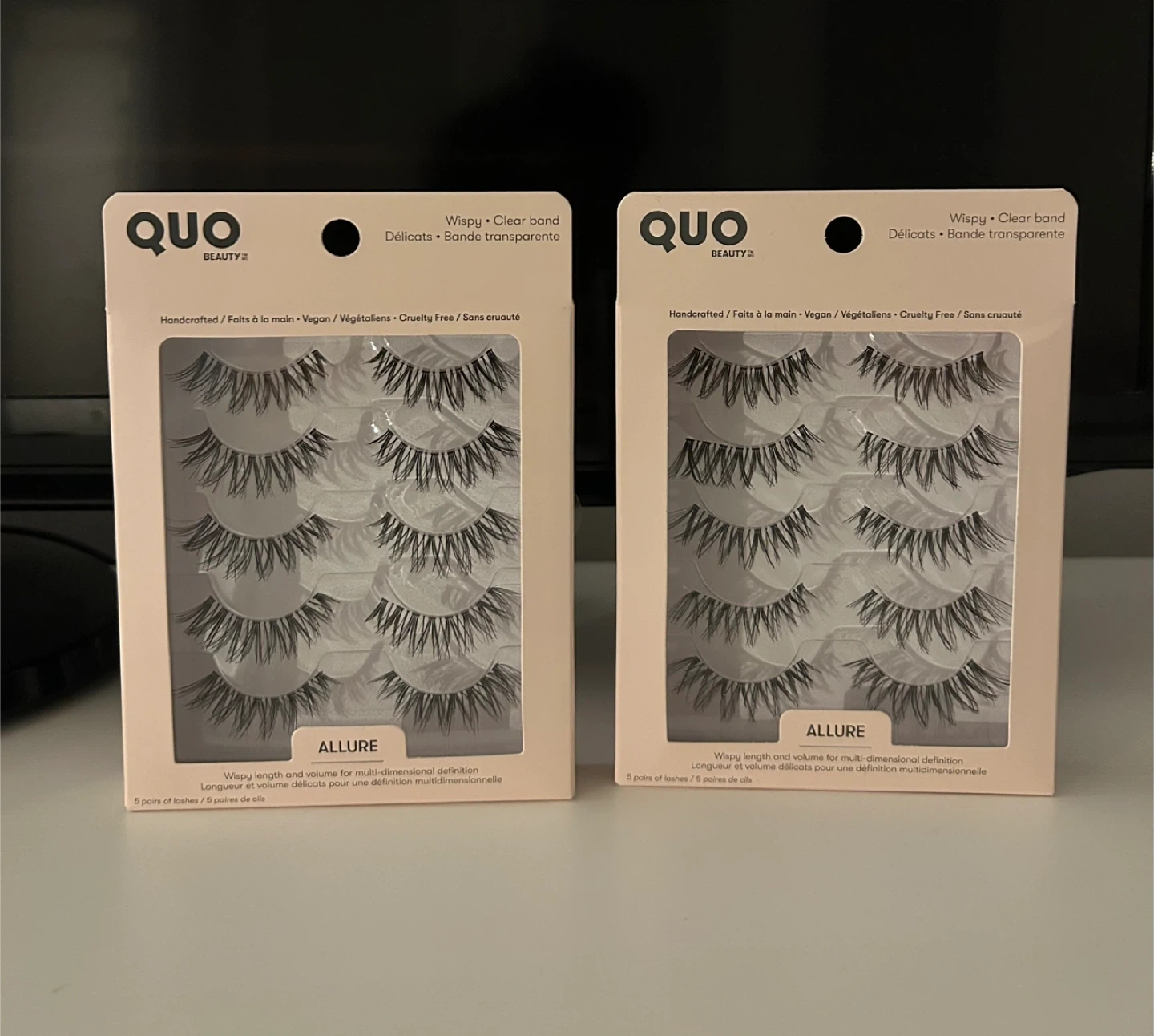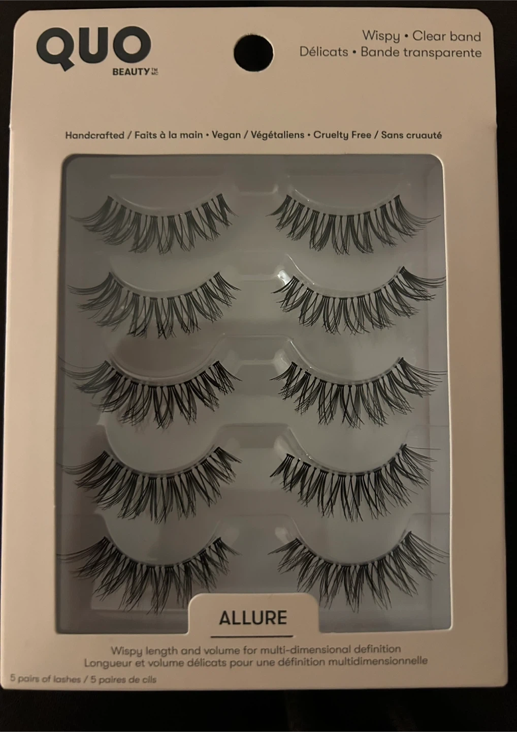 Get gorgeous eyes with this 5-pair pack of QUO Beauty Allure false lashes. They're designed for wispy length and multi-dimensional definition. Handcrafted, vegan, and cruelty-free for a beautiful look you can feel good about!