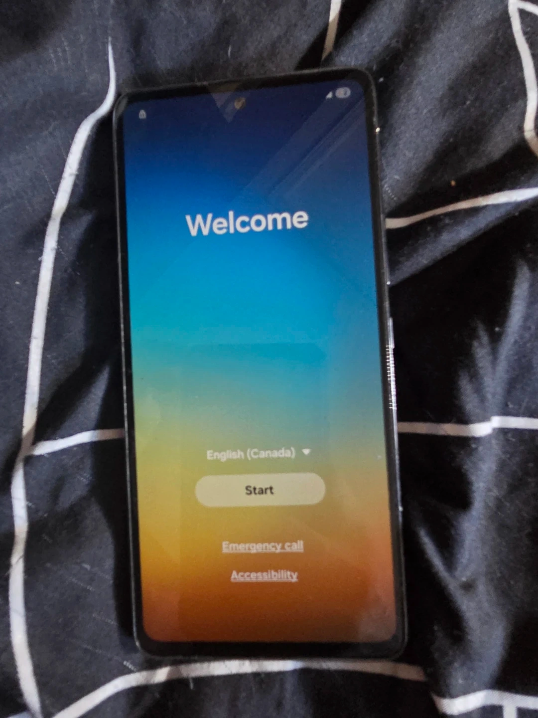 It has a large display and a triple camera system on the back. It's ready for setup with English (Canada) selected.