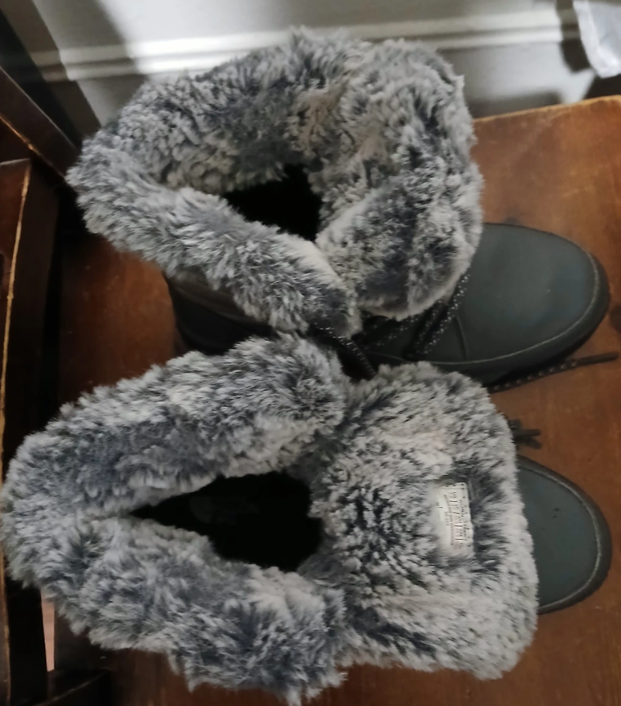 These gray winter boots from The North Face are designed for warmth and comfort. They feature a faux fur lining and lace-up closure. Durable sole provides good traction. Size 7.5 adult.