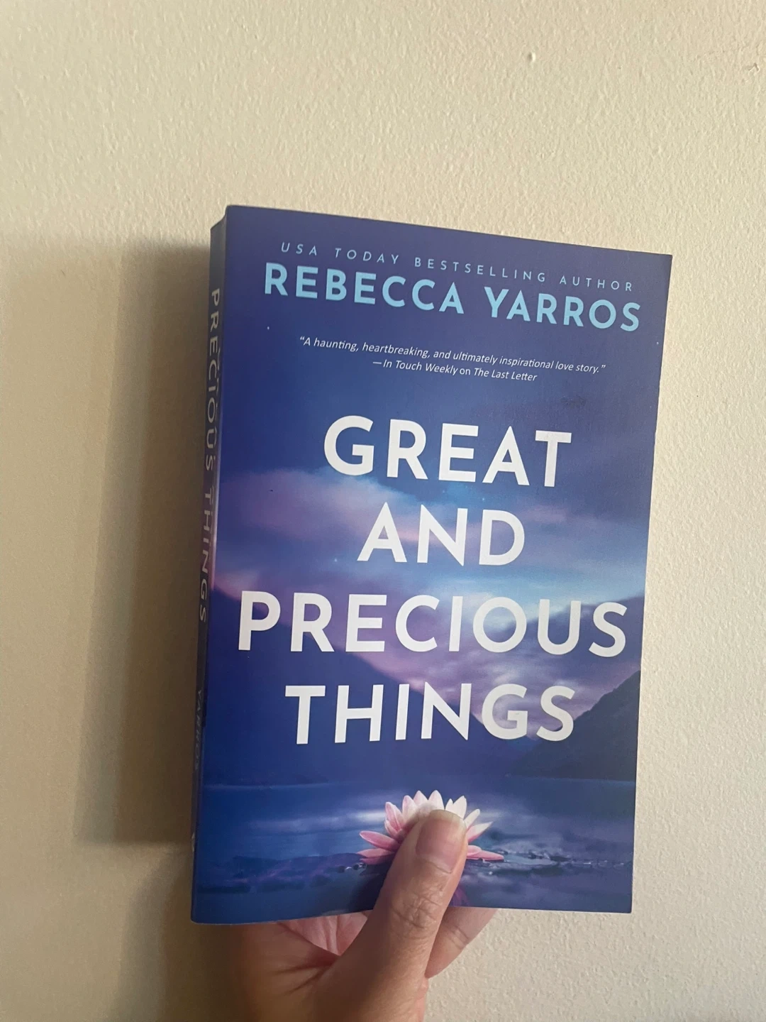 Selling the book 'Great and Precious Things' by USA Today bestselling author Rebecca Yarros! It's a captivating story that's sure to pull at your heartstrings. A haunting, heartbreaking, and ultimately inspirational love story