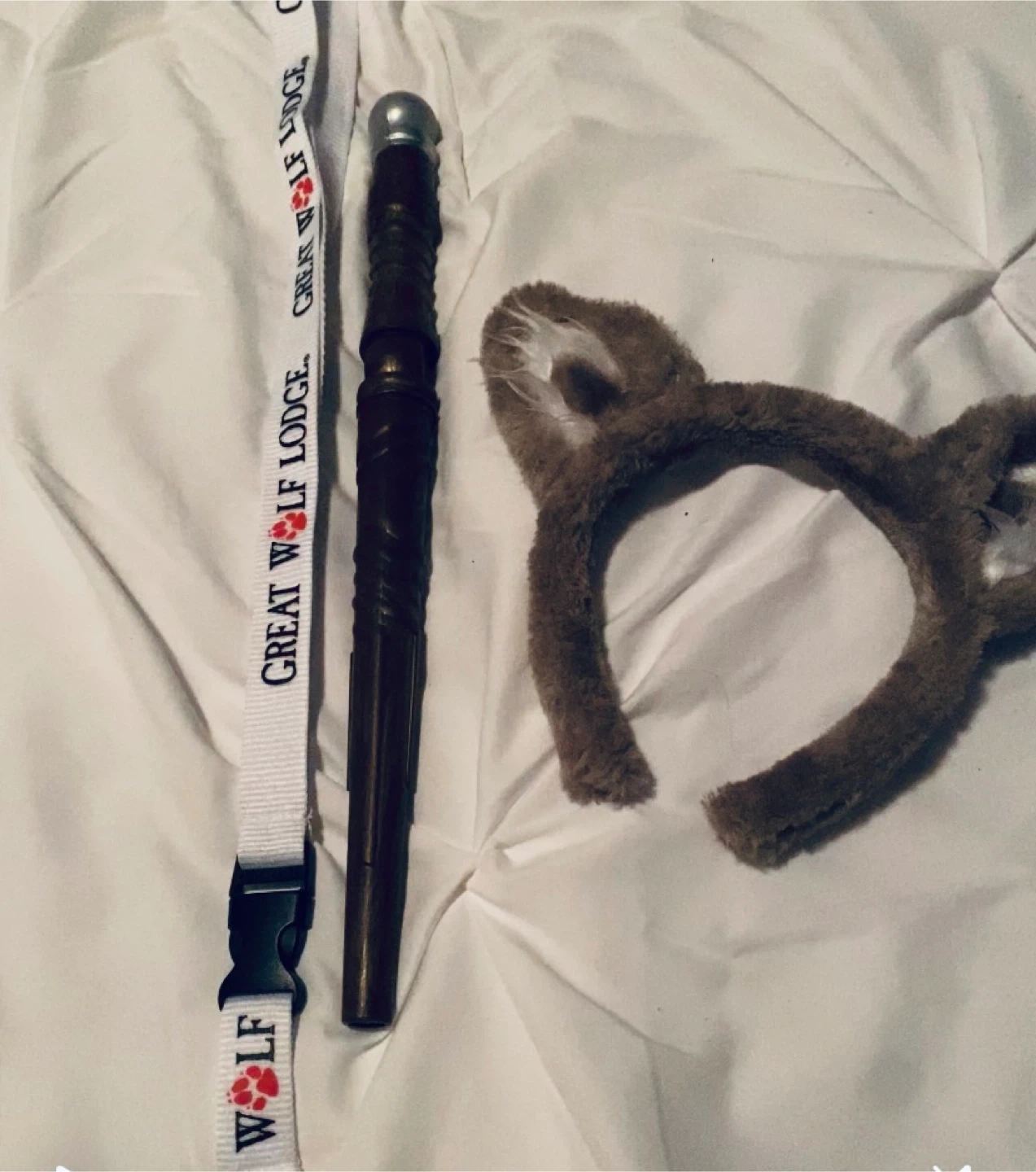 Selling a Great Wolf Lodge wand and wolf ear headband. Great for dress-up or a trip to the lodge!