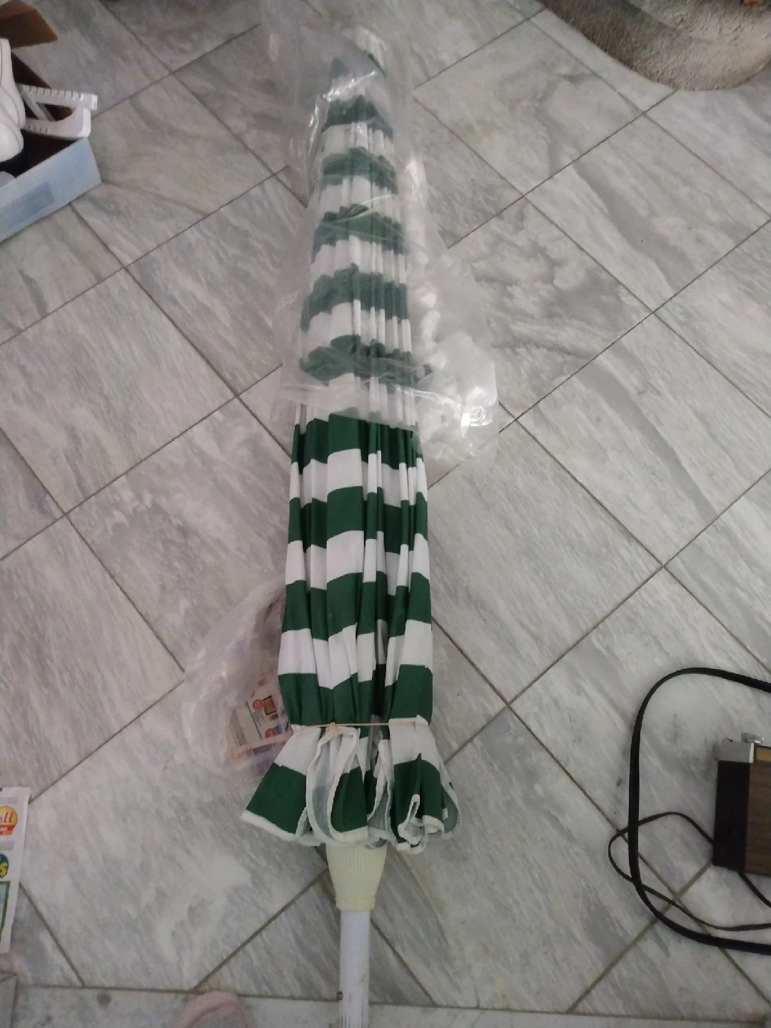 16Selling a green and white striped patio umbrella. It's in great condition,
