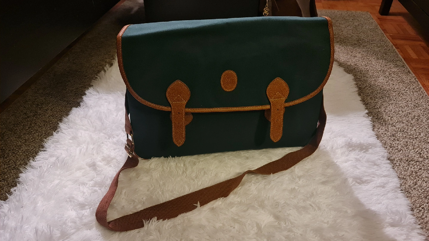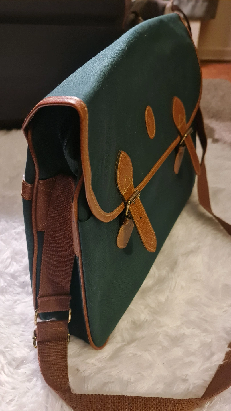 86Green Canvas Shoulder Bag - leather accents, classic design and in good condition. Perfect for everyday use!