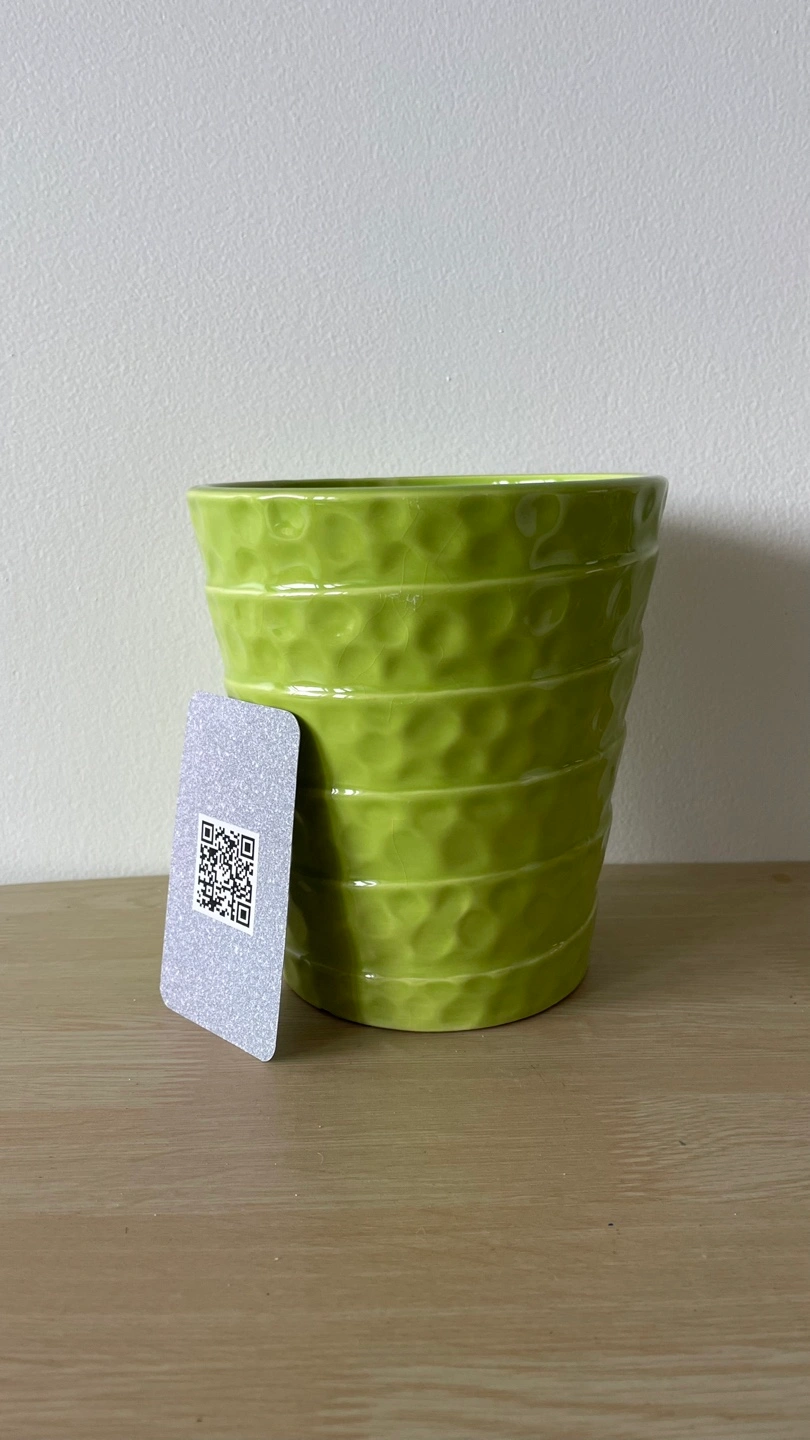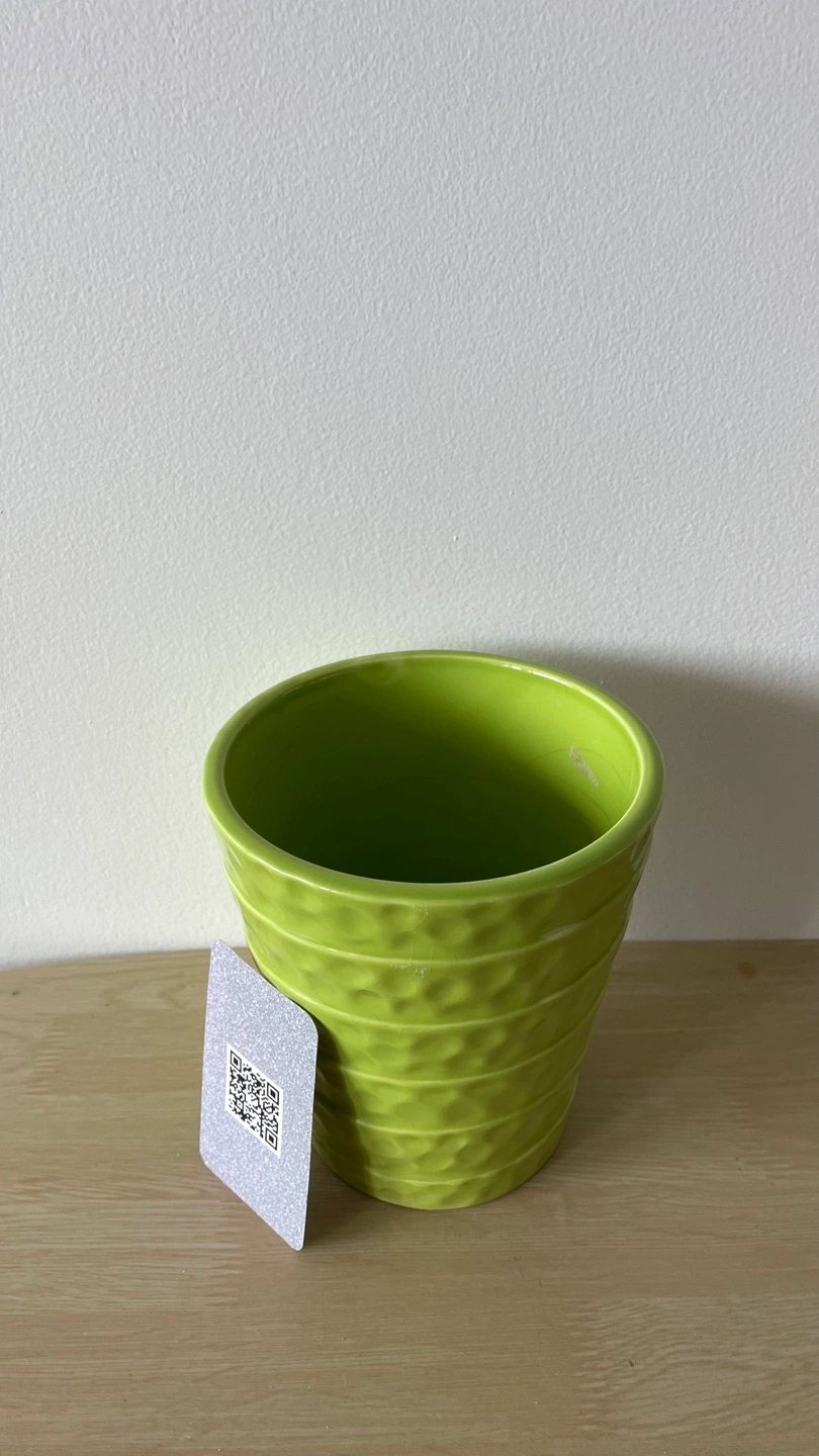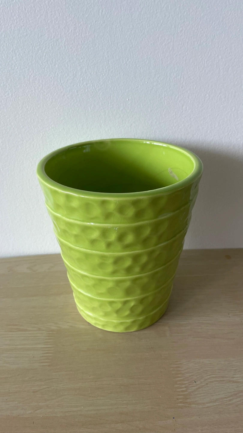 Here's a lovely green ceramic flower pot! It's perfect for adding a pop of colour to your home or garden. It's in great condition and ready for a new plant friend