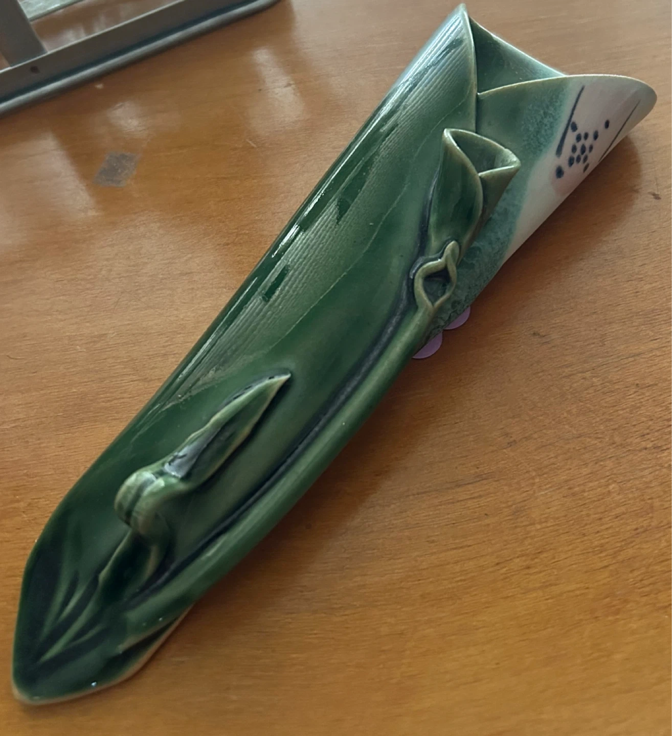Selling a unique vintage green pottery wall pocket vase! It's in great shape and would be a lovely addition to any home decor. The vase features a leaf-like design with a floral accent. Perfect for displaying flowers or greenery