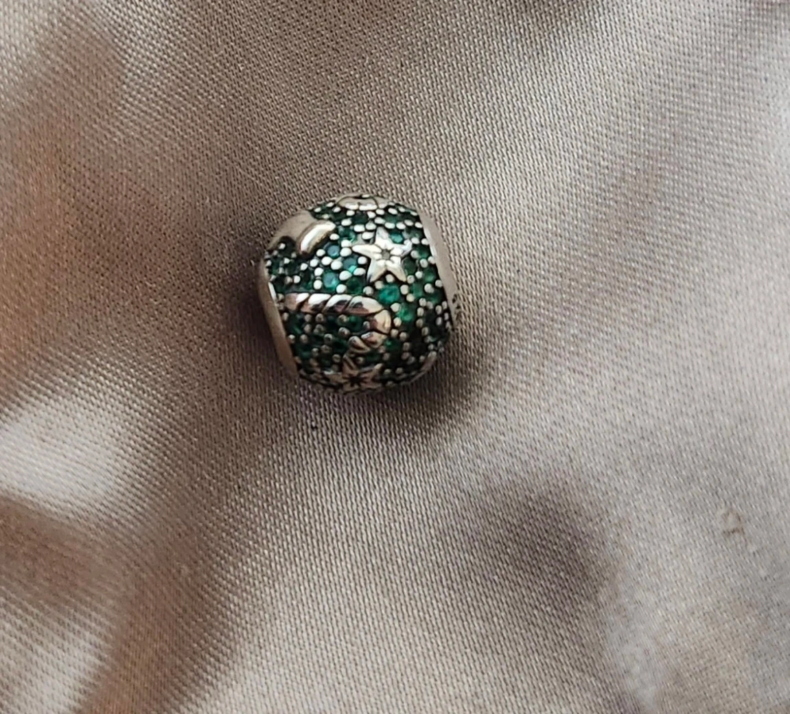 522Selling a charm with green pave detailing with candy canes and stocking! It's ready to add some sparkleor christmas cheer to your bracelet or necklace
