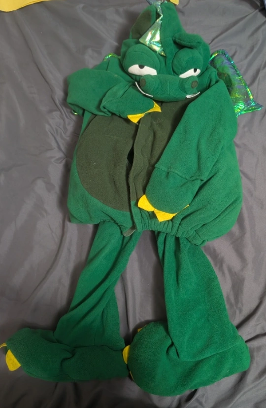 25Here's a fun green dragon costume! It's in great condition and ready for a new home. It's perfect for dress-up or Halloween size 4t -5t