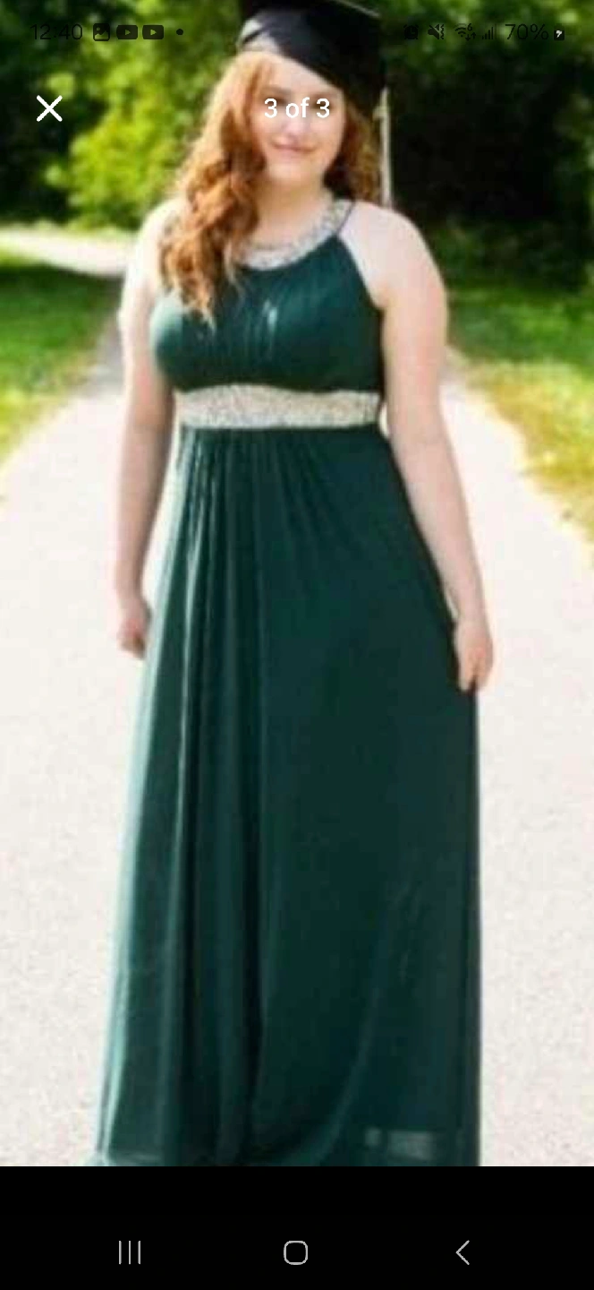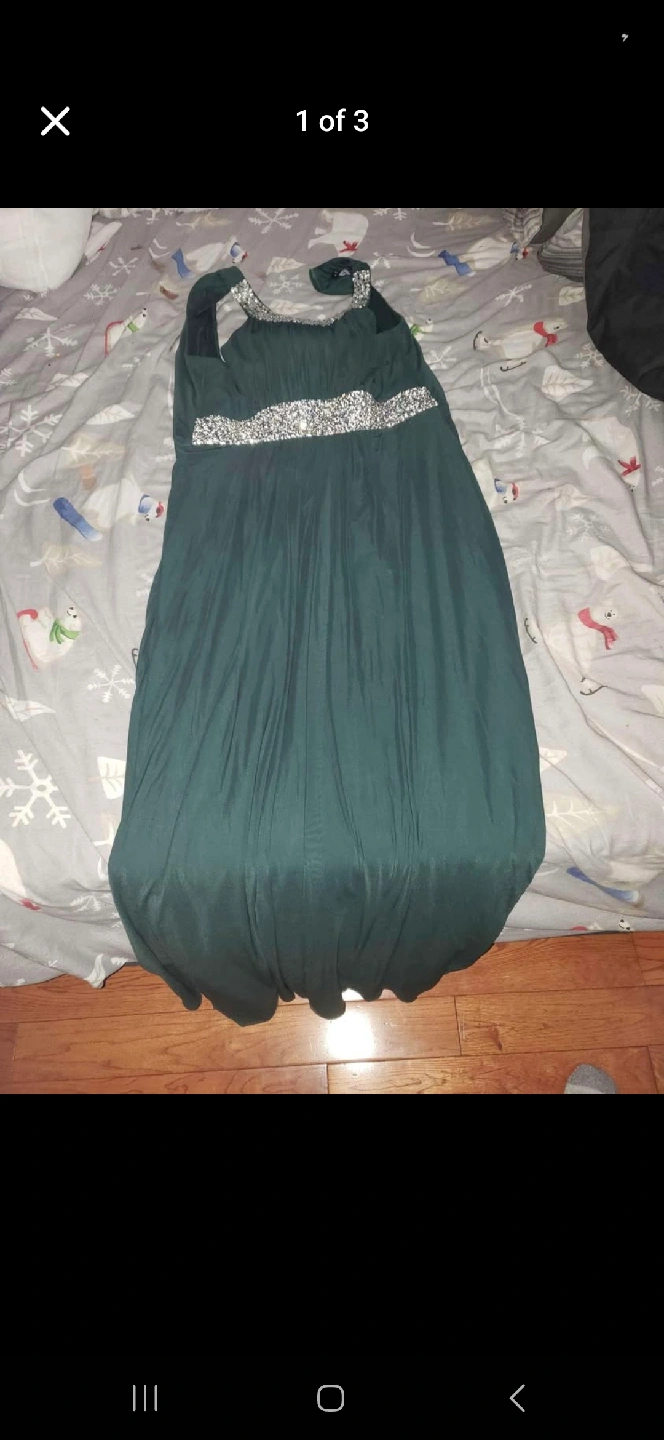 Selling a green dress. It's in good condition and has a silver embellished waist. Perfect for a formal event or graduation! (used once)