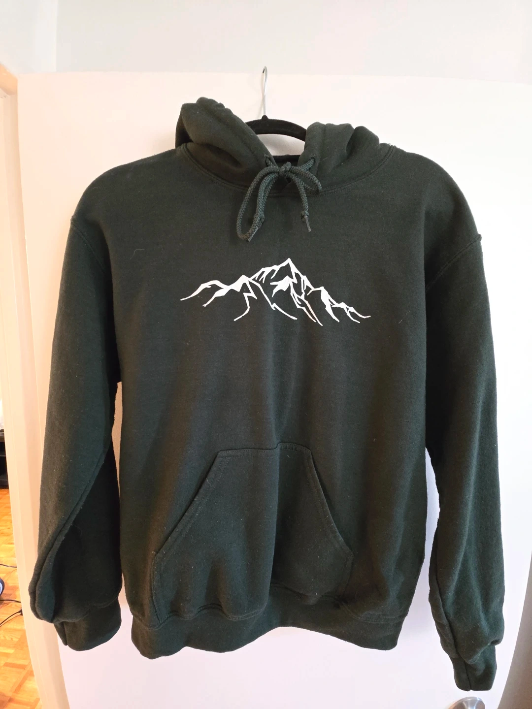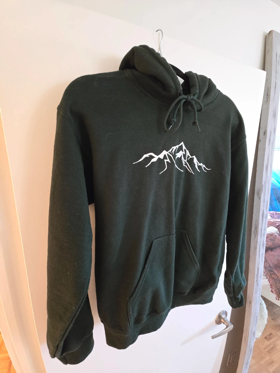 23Selling a cozy green hoodie featuring a cool mountain design, purchased from Etsy. It's in great condition. It fits like a women's medium or large - oversized and cozy. Pick up in summerhill or near the distillery district. Cash only.