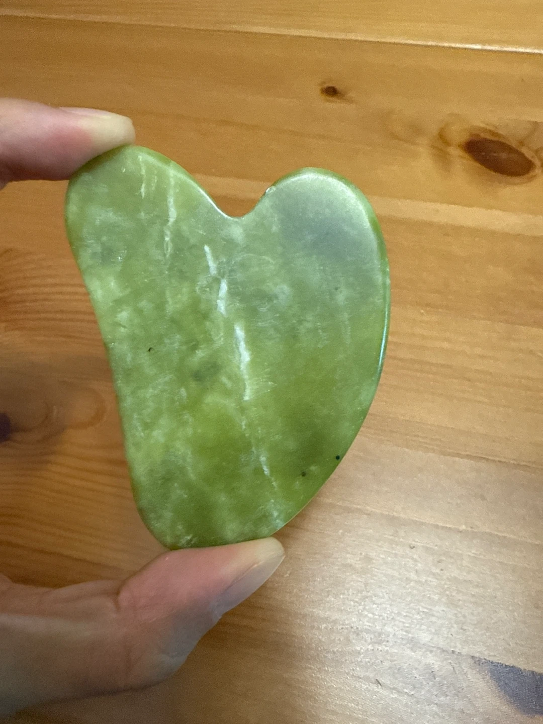 Selling a green jade gua sha facial tool! It's great for facial massage and lymphatic drainage. It's in great condition and ready for a new home