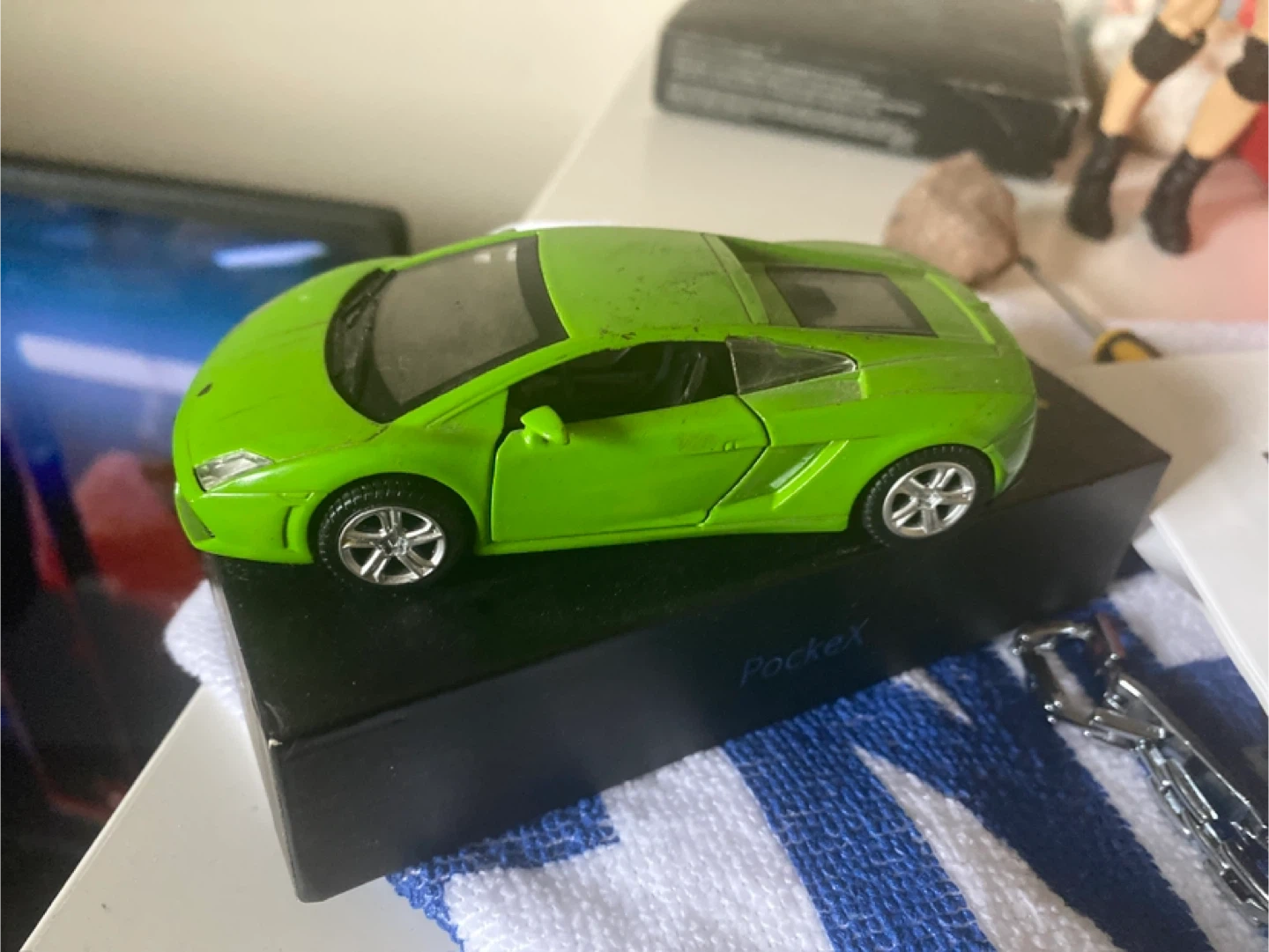 37Selling a fun green Lamborghini diecast car! It has some minor wear, but it's still in good shape for play or display. Perfect for a car enthusiast or a kiddo who loves cars