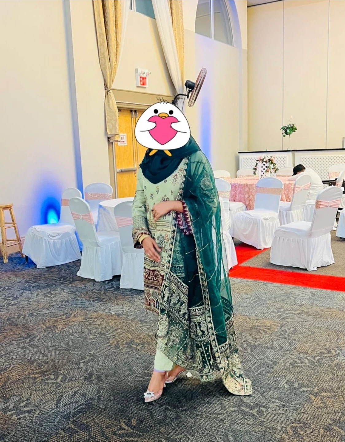 68Jari and jardousy embroidery work on organja dress.Perfect gor any special occasion