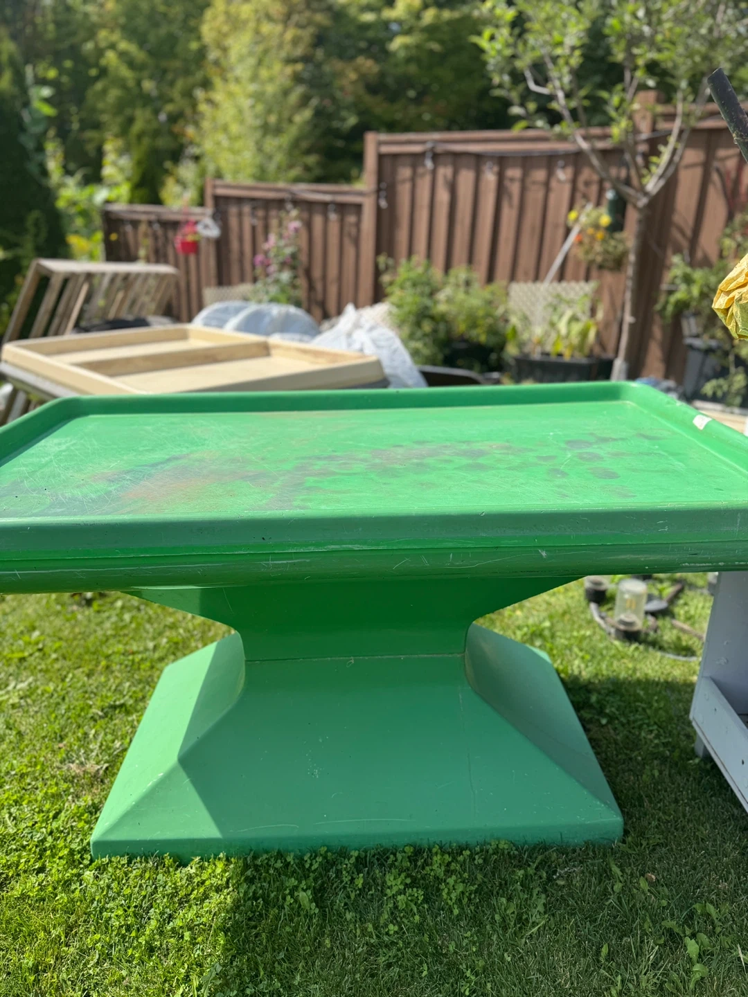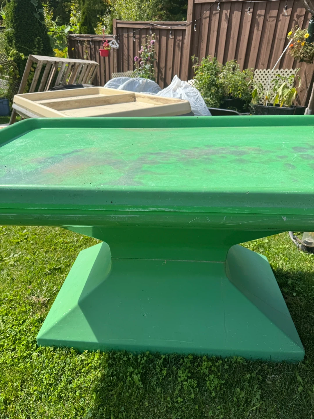 Selling a green plastic table, perfect for outdoor use. It's sturdy and in good condition, ready for your patio or garden even in grocery stores