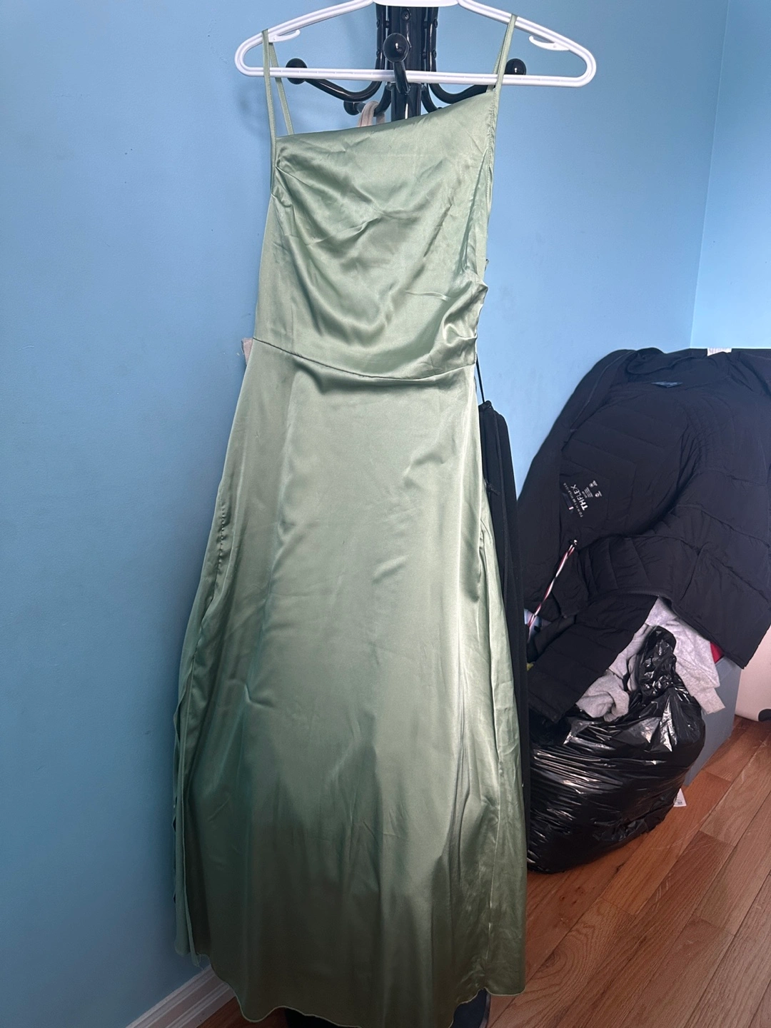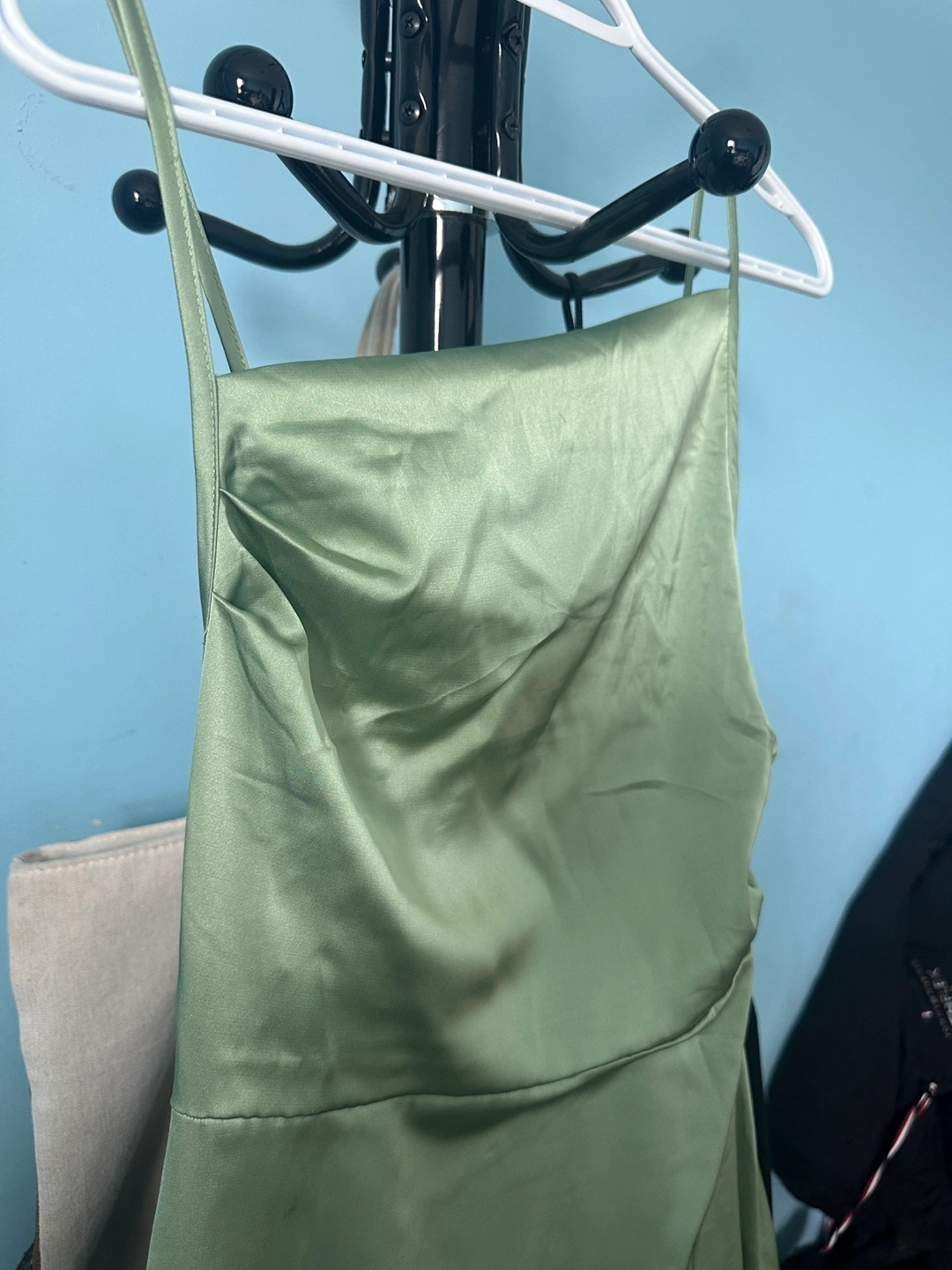 Selling a lovely green satin dress! It's in great condition and would be perfect for a special occasion or a night out. The satin material gives it a beautiful sheen and elegant look.