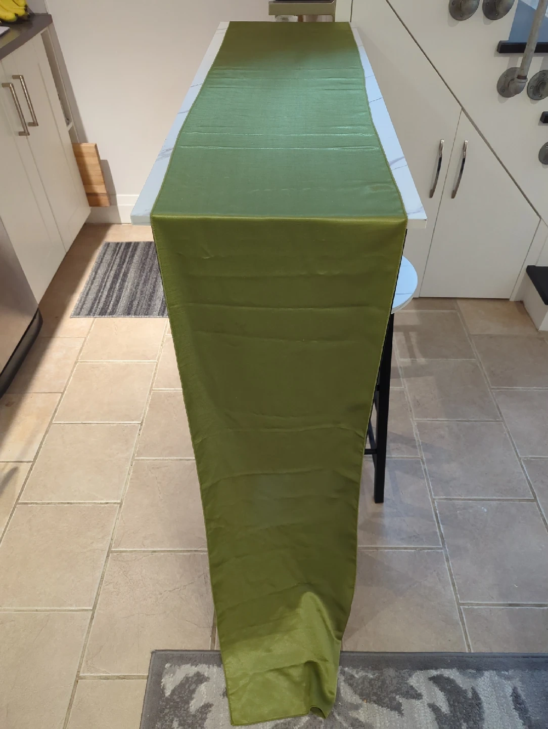 68Here's a lovely green table runner, perfect for adding a touch of colour to your dining table or sideboard! It's in great shape and ready for a new home 16 feet long