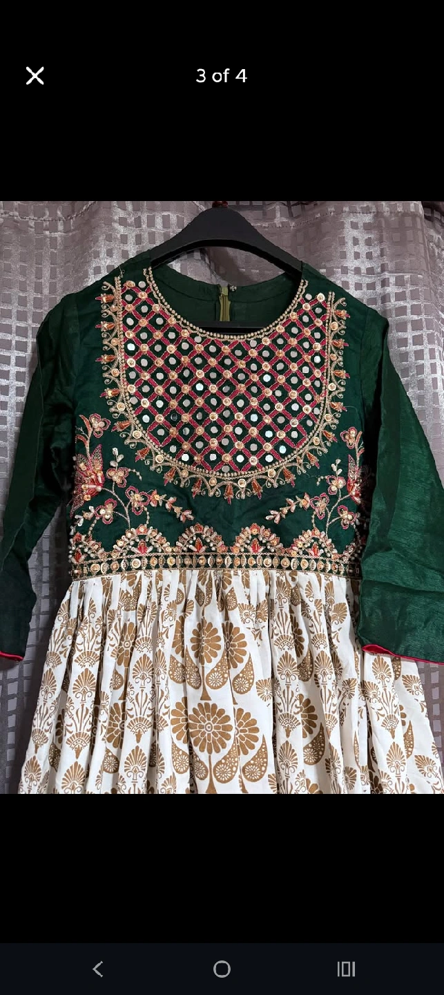10Zahra Ahmad brand, custom made Beautiful green and white dress with intricate embroidery! Perfect for a special occasion or just feeling fancy. It features a unique design and comfortable fit.
