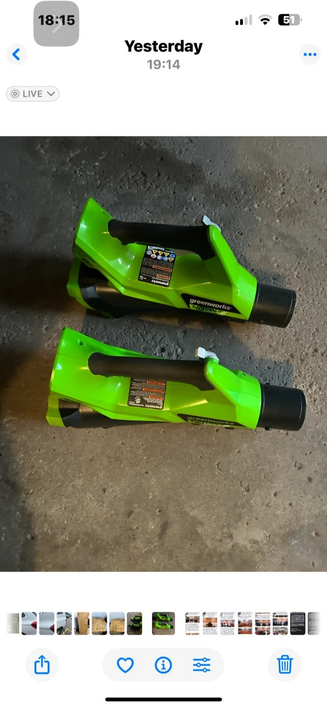 Selling a Greenworks 40V cordless leaf blower. It's in great shape and ready to help with your yard work! It comes with all the attachments you see in the pictures. No battery. Pls text 4164027666