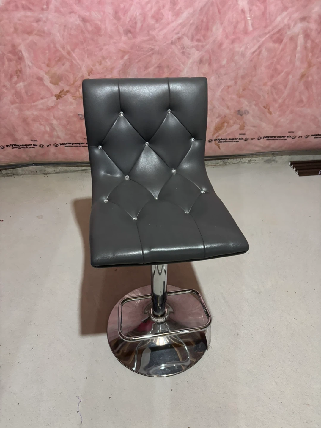 5Selling a grey adjustable bar stool. It's in great condition and would look great in any kitchen or bar or vanity are The stool features a chrome base and a comfortable, padded seat. It's easy to adjust the height to your liking. Perfect for adding a touch of modern style to your home!