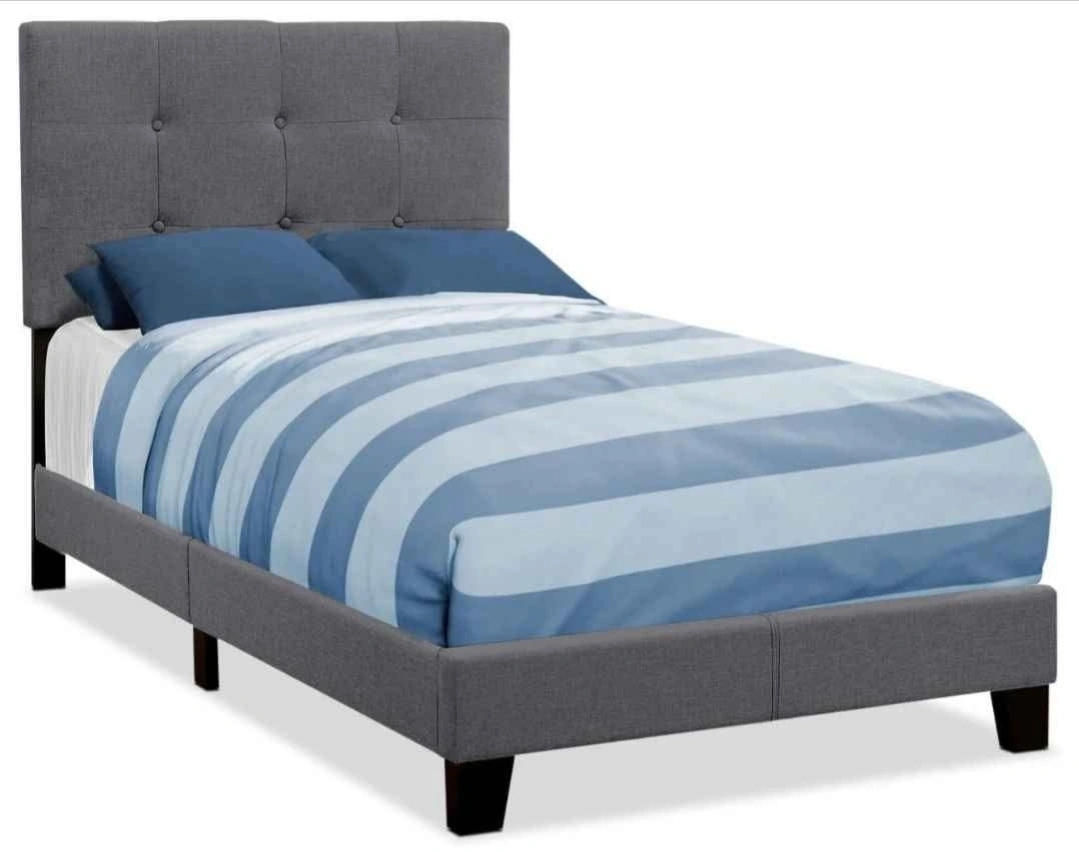 Selling a grey bed frame thats never been opened and its still in original packaging. It's in great shape and would be perfect for a bedroom makeover! The neutral colour makes it easy to match with any bedding or decor. Don't have actual picture of bed frame as it hasn't been opened.