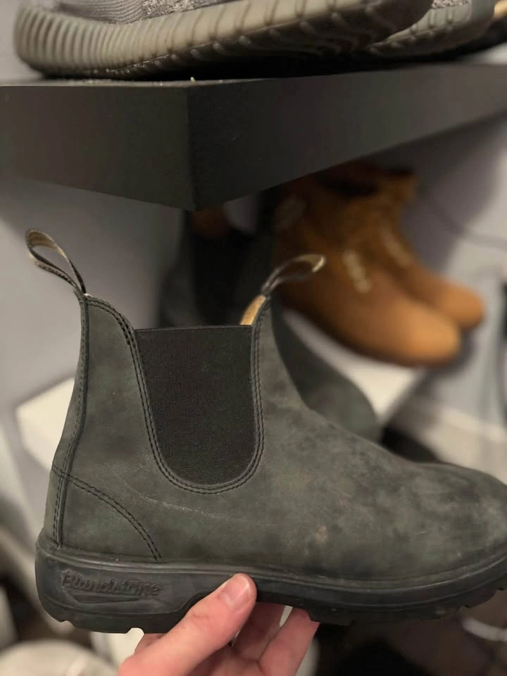 Size 8 (fit more like a 9-10) I bought these boots like a few years ago because I thought they looked really cool with the suede like material. I liked the way they just slip on and they’re surprisingly more comfortable than they look. I no longer have the box, but unfortunately I just don’t wear them anymore.