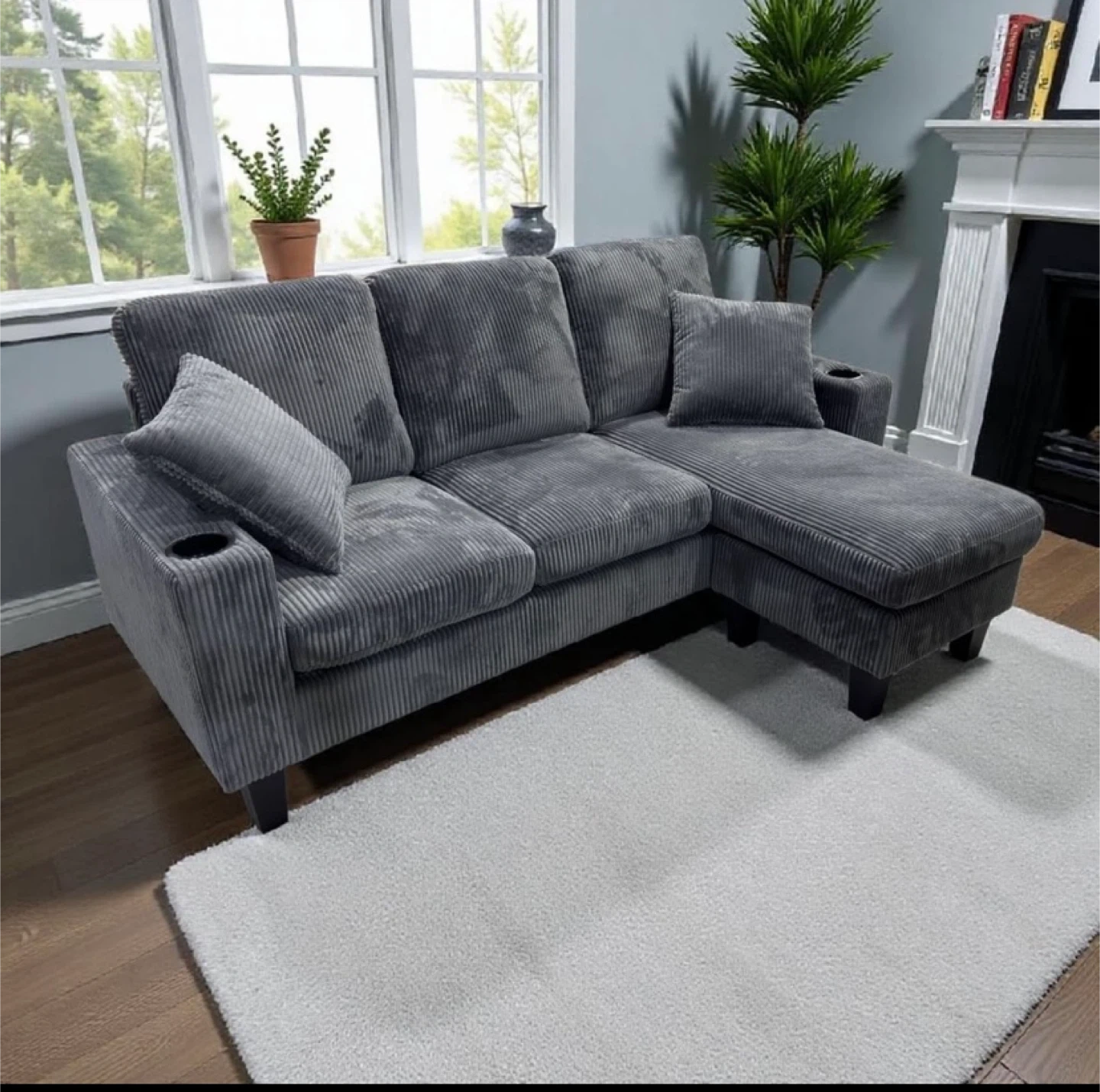 Grey Corduroy Sectional Sofa bed with Storage