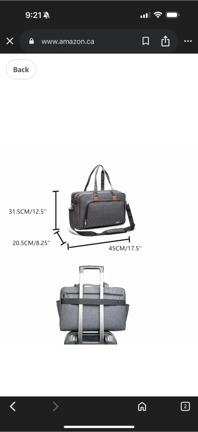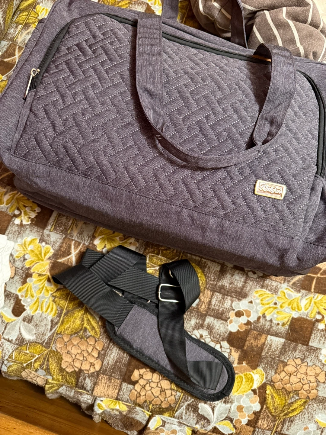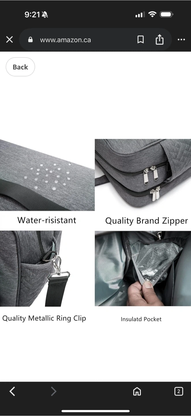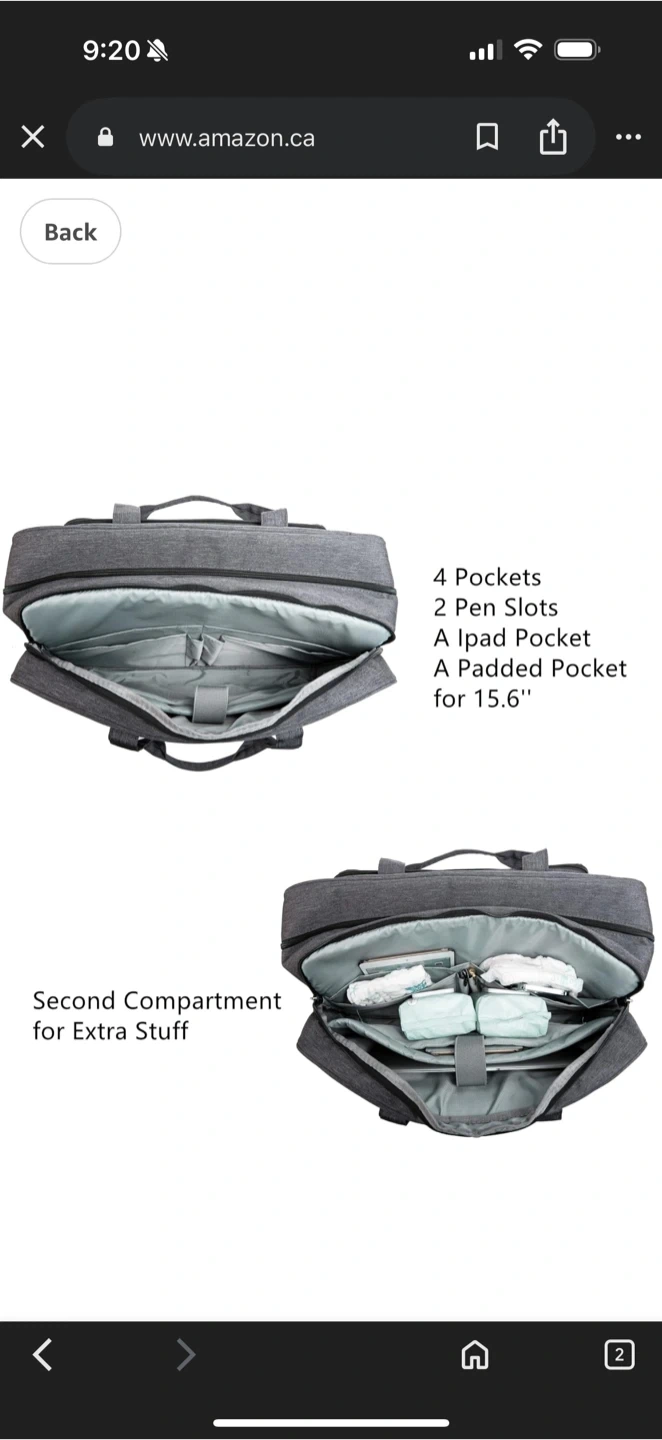 14Check out this diaper bag! It's a stylish grey colour and has tons of room for all your baby essentials. It features: - 4 pockets - 2 pen slots - iPad pocket - Padded pocket for 15.6" devices - Second compartment for extra stuff It's also water-resistant and has quality zippers and metallic ring clips. The dimensions are approximately 17.5" x 12.5" x 8.25" Pick up near to regent freshco