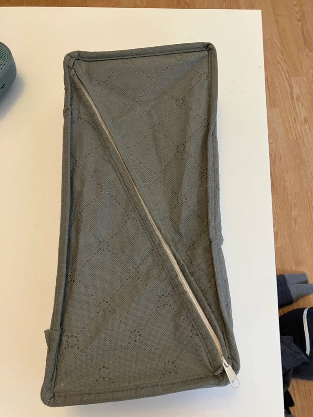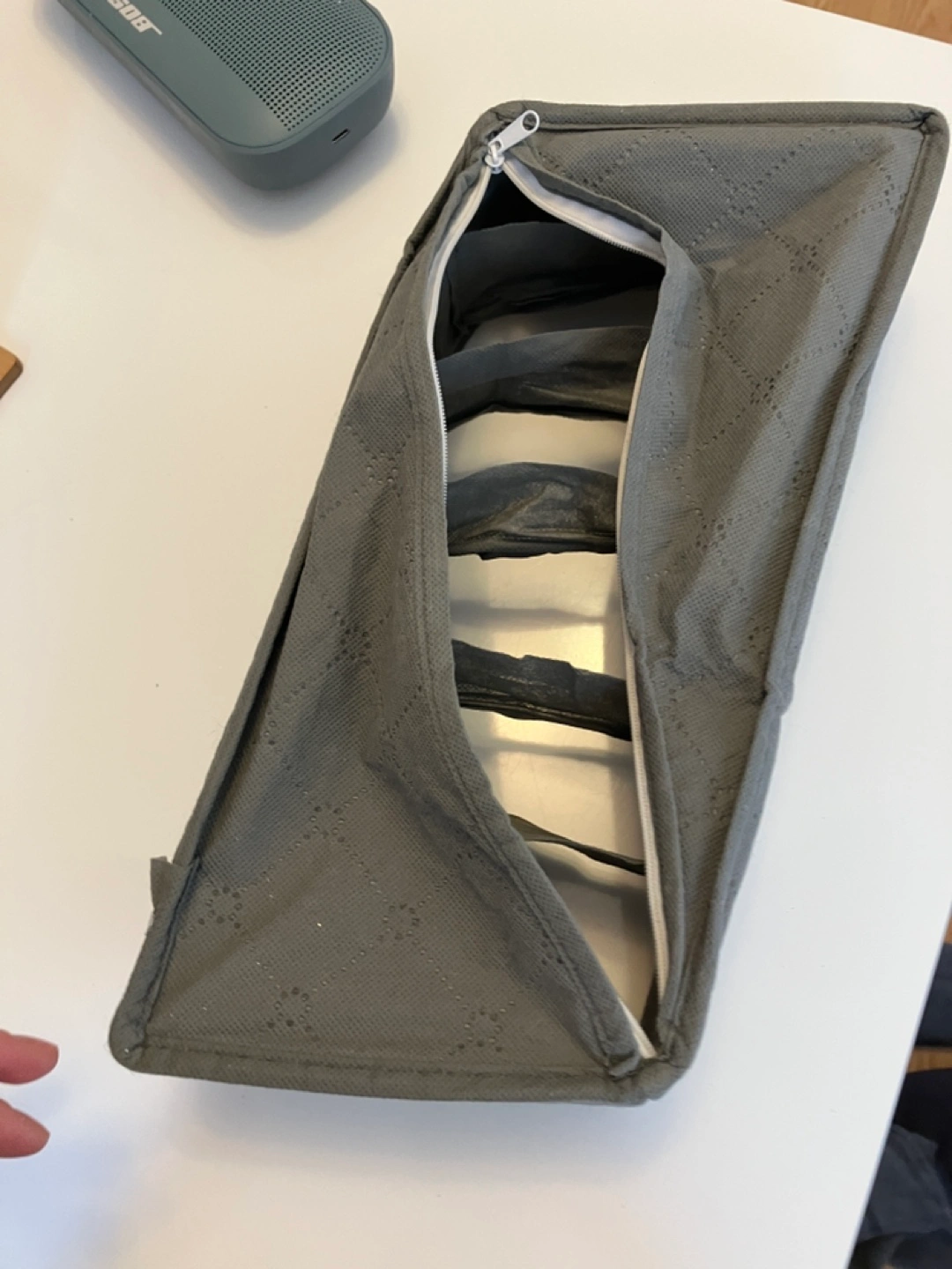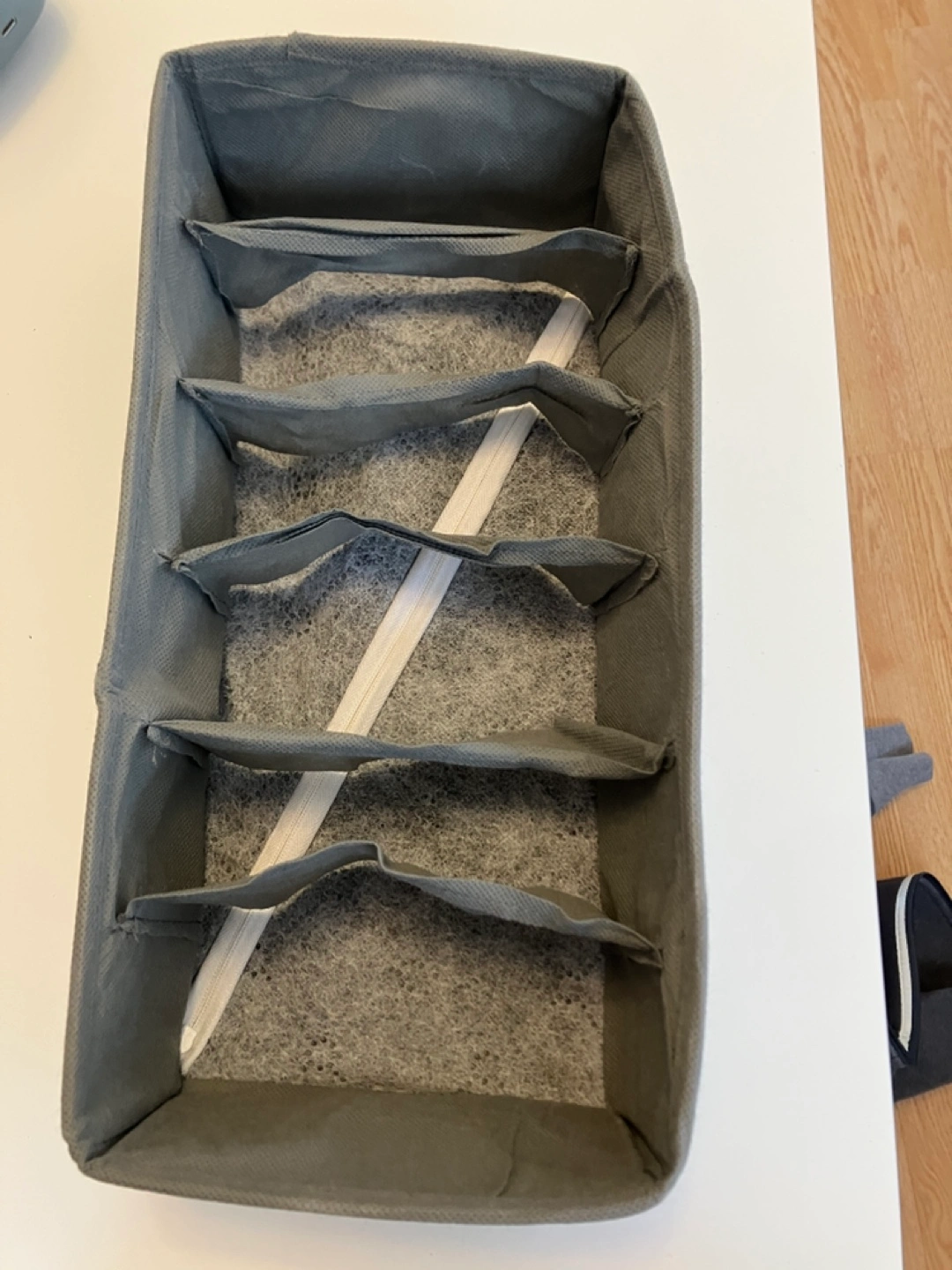 510Stylish and functional drawer organizer from Amazon in good condition. Zippered closure at the back as shown, and can fold up for easy travel and storage. Features multiple compartments; perfect for organizing clothes such as bras, underwear and bathing suits.