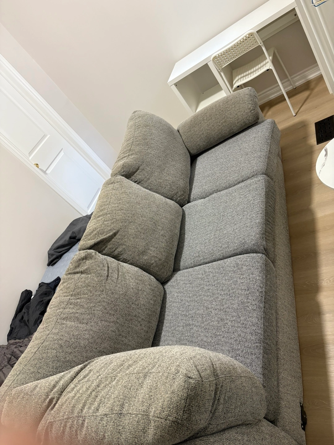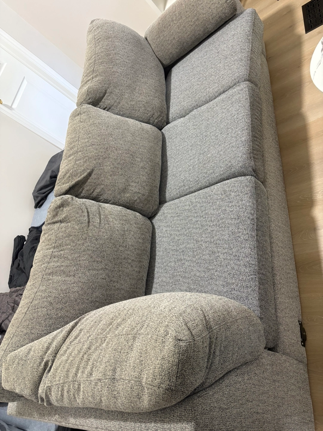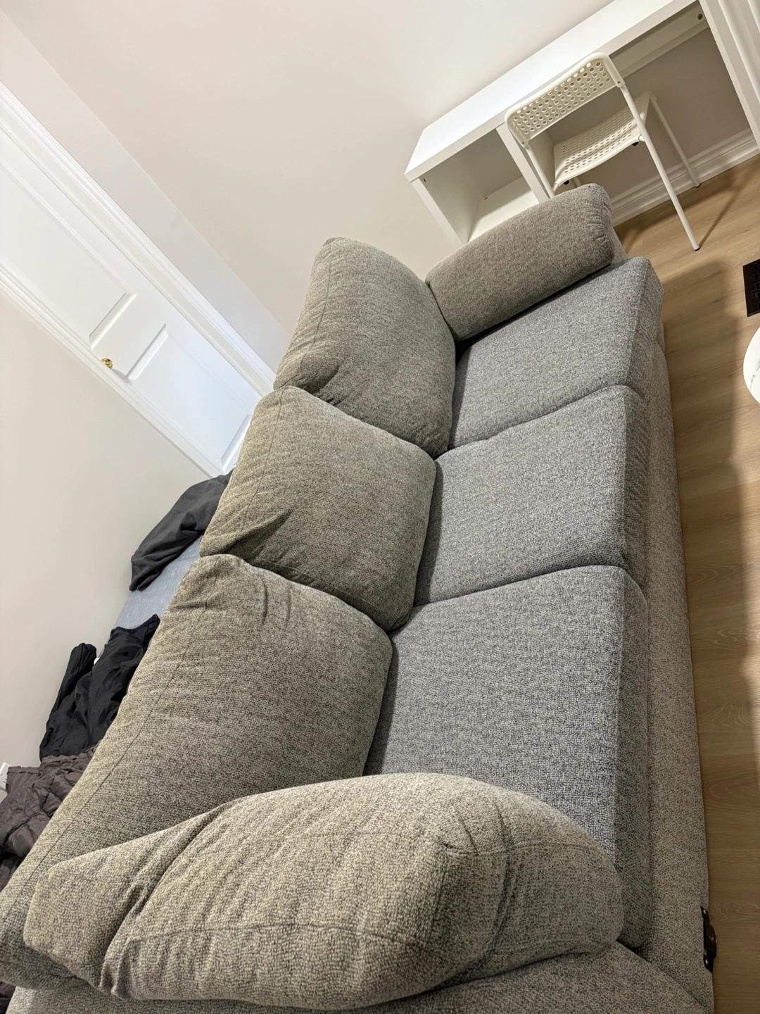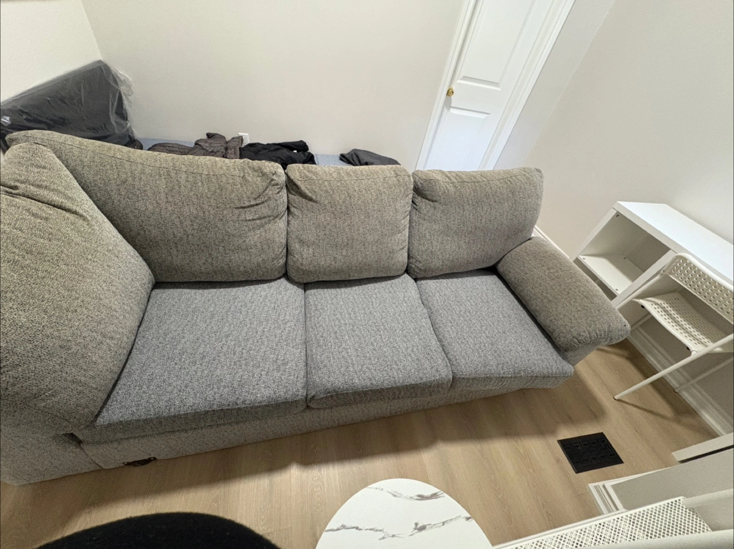 15Selling a comfy grey fabric sofa! It's in great shape and would be perfect for a living room or den. The cushions are nice and plush, making it a great spot to relax after a long day. It’s a stylish and functional piece of furniture