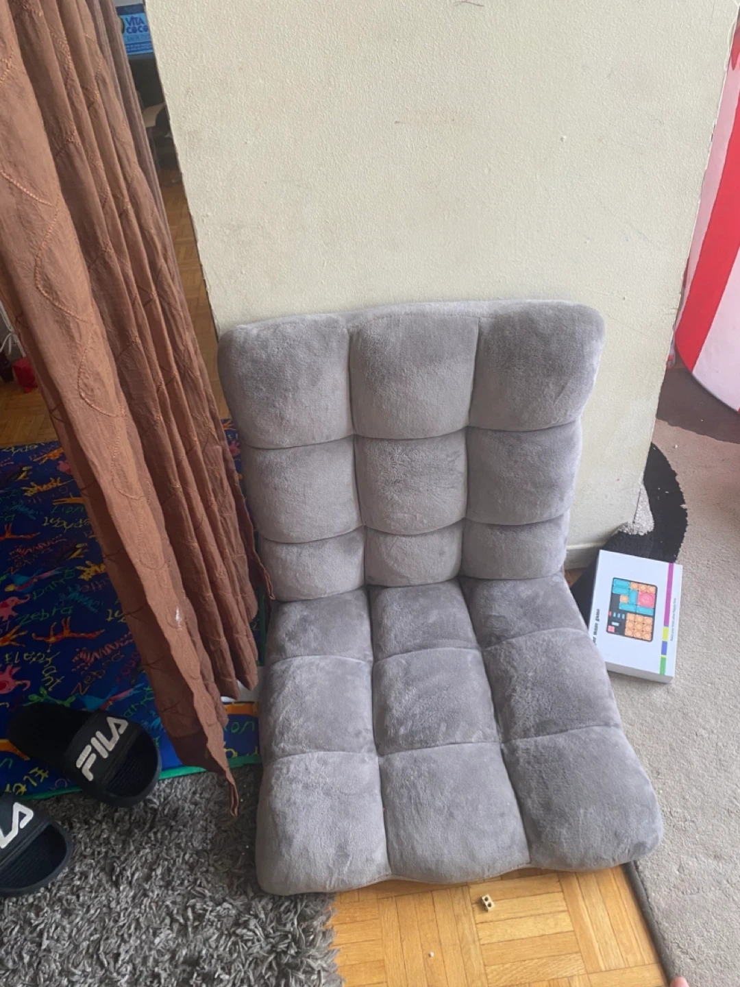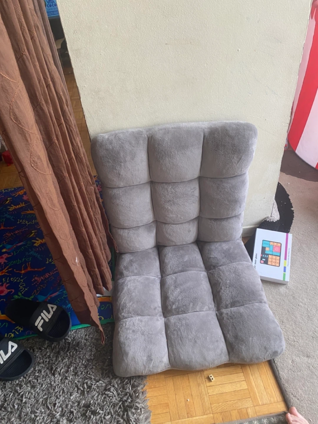 20This grey floor chair provides great back support and is perfect for relaxing or reading. It's in good condition and ready for a new home! The chair is a soft, plush material and offers comfortable seating on the floor