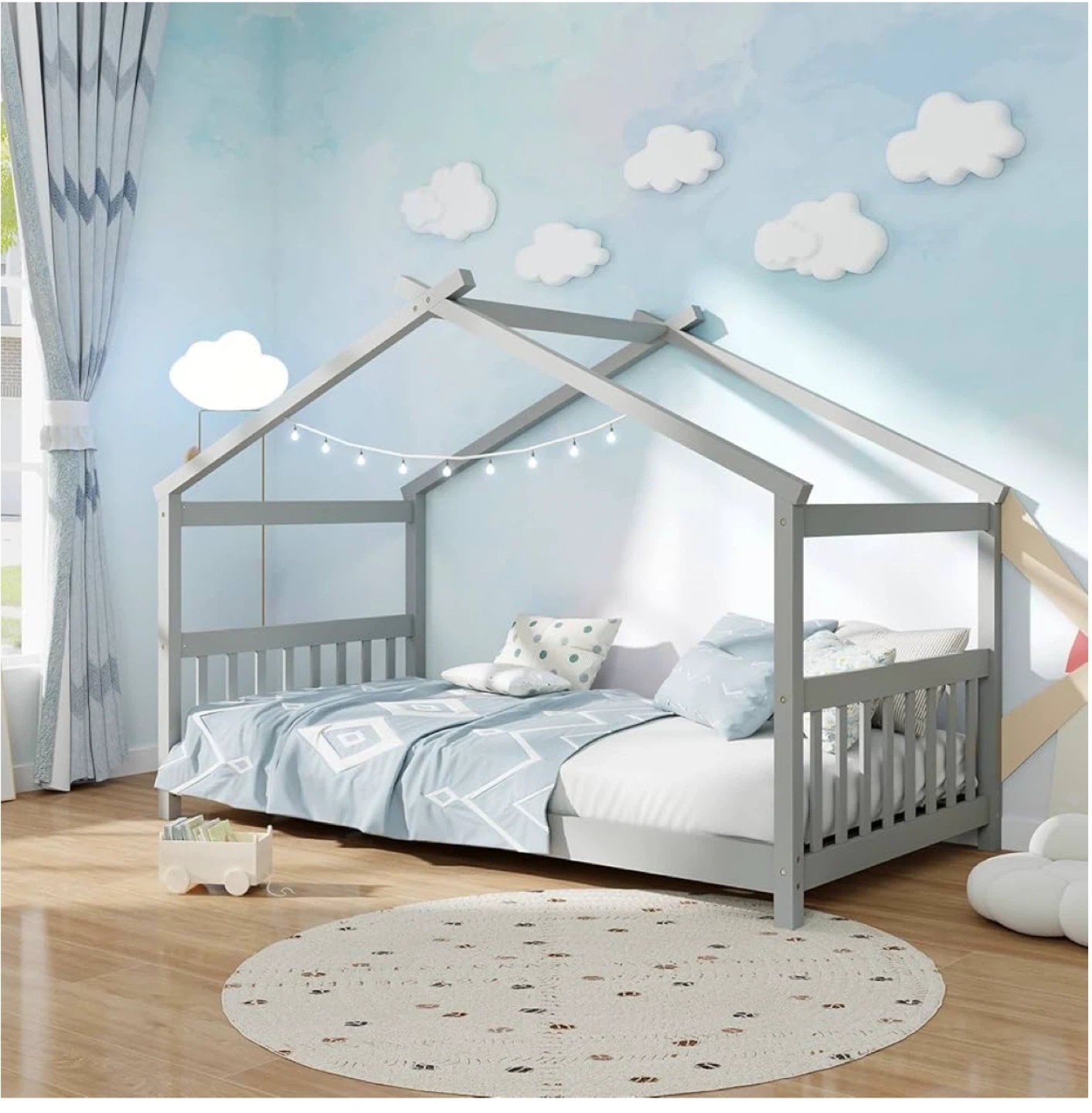 Selling a grey house bed frame, perfect for a kid's room! It's in great condition and ready for a new home. This bed frame adds a fun, whimsical touch to any bedroom decor