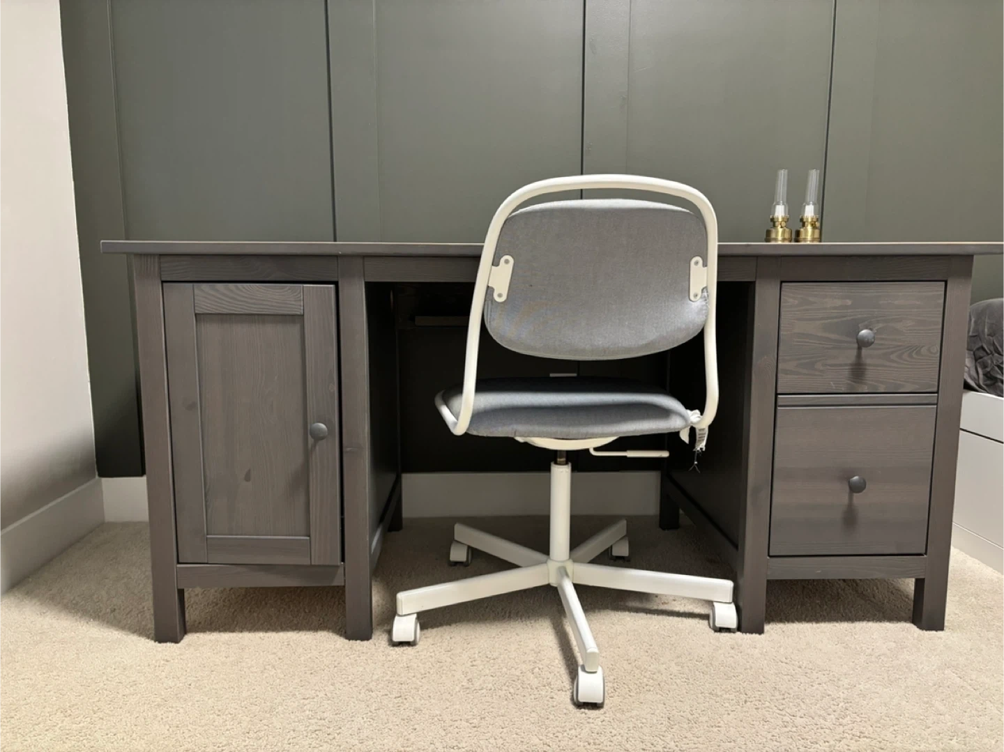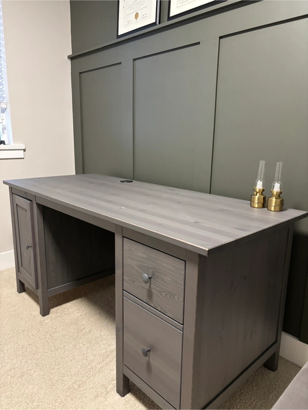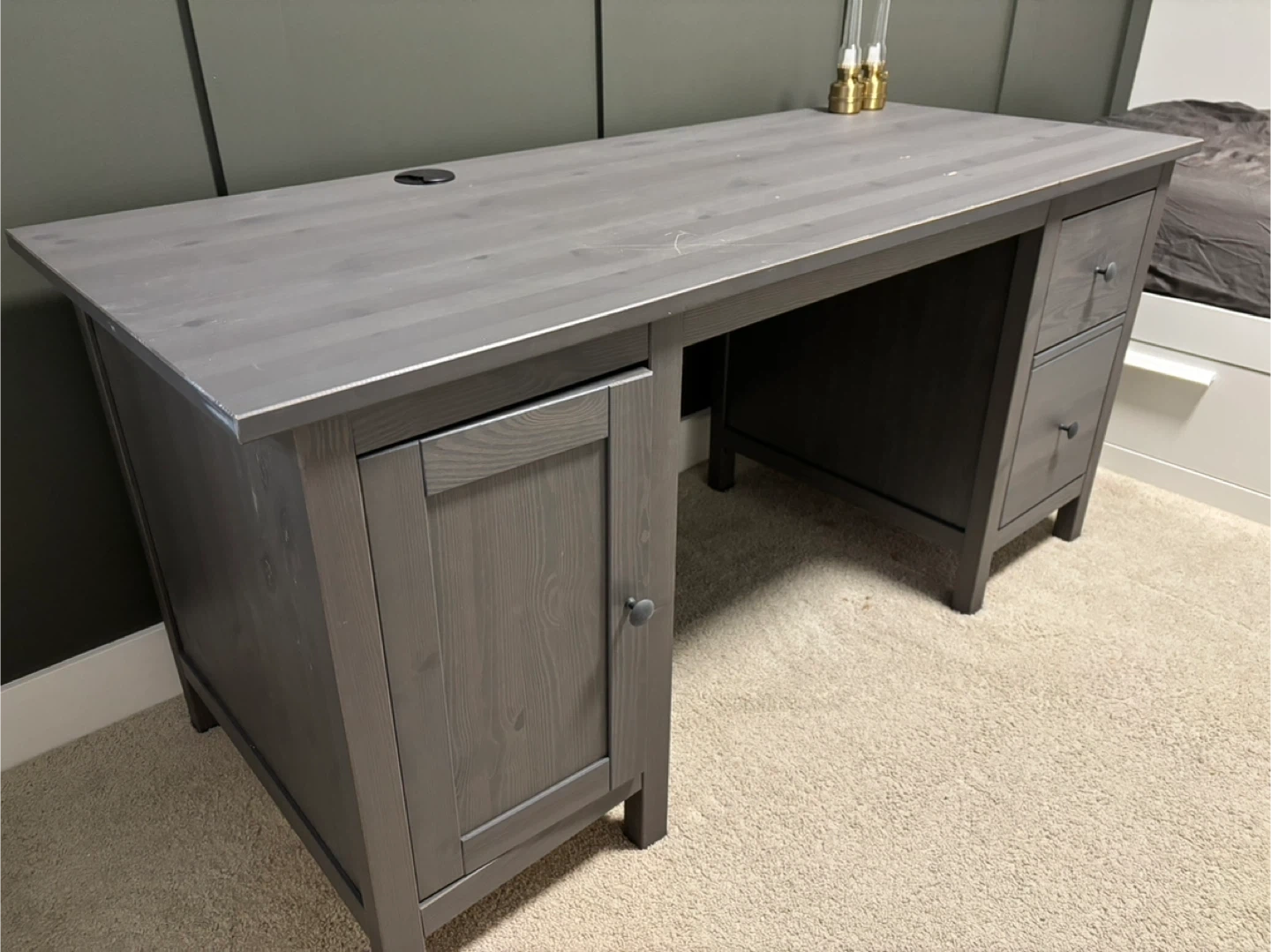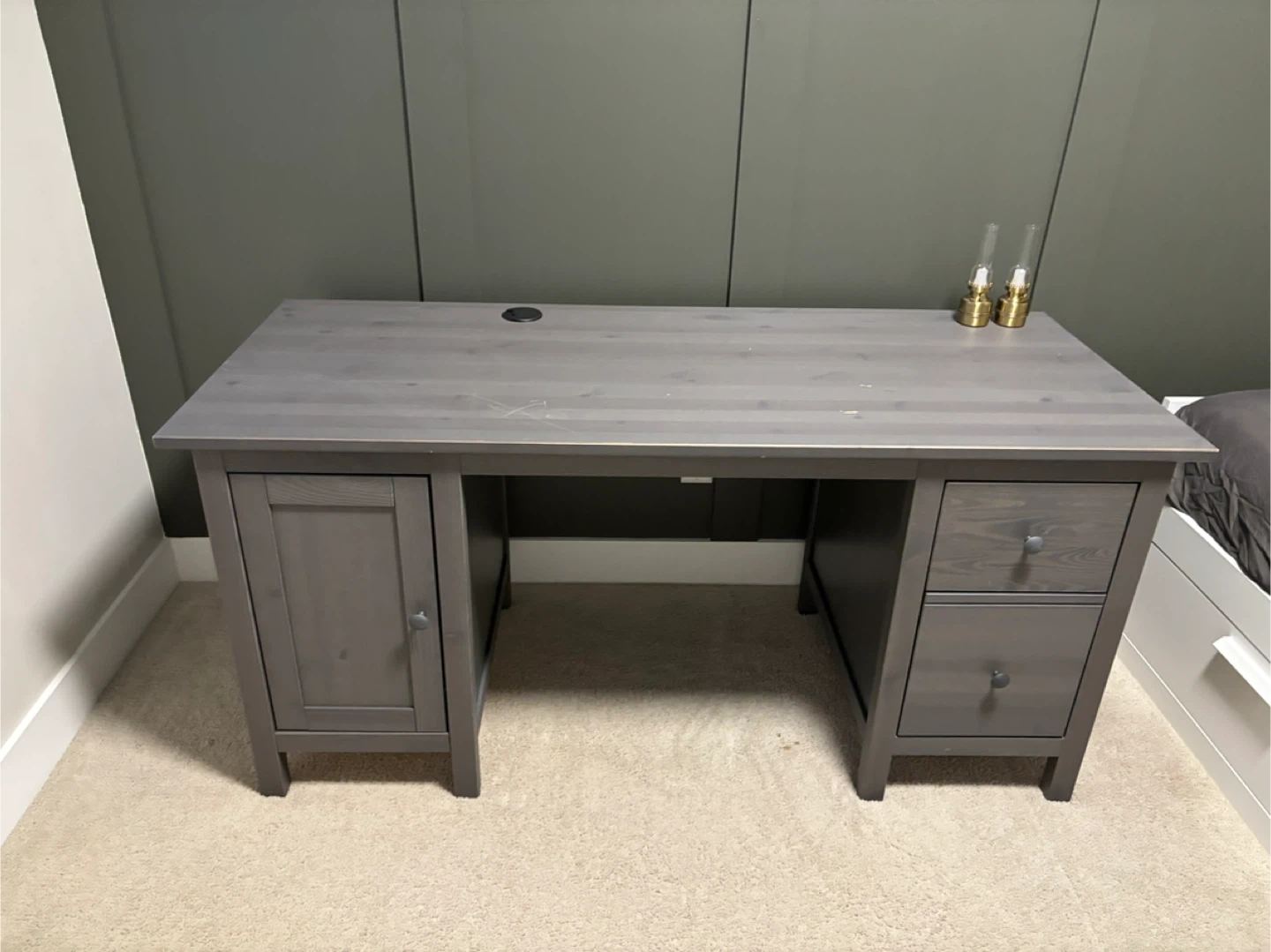 60Selling a grey Hemnes desk. It's in good condition and has a nice, solid feel to it. Perfect for a home office or study space!