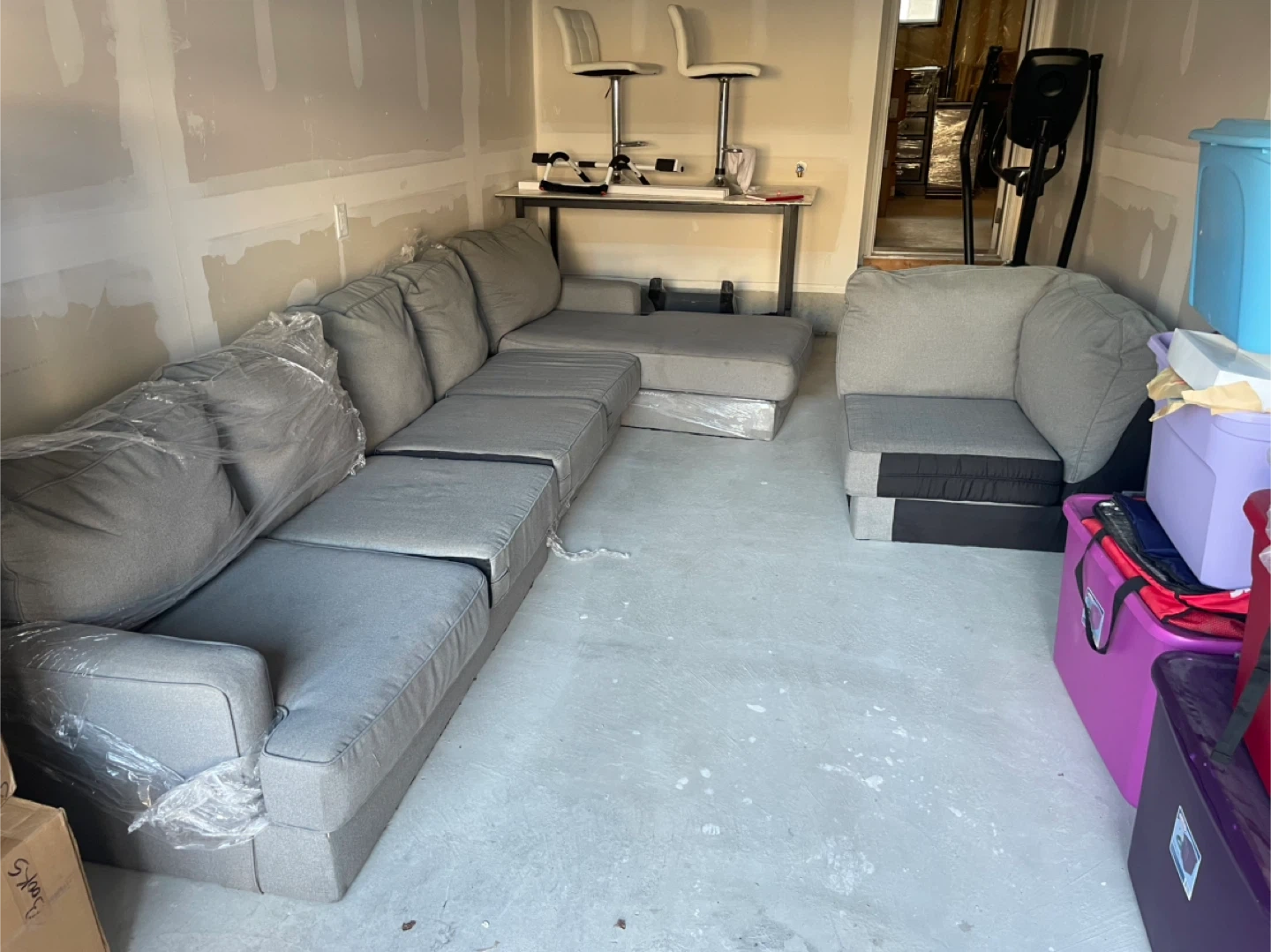Selling a grey modular sectional sofa. It's still partially wrapped, so it's in great condition. Perfect for a living room or entertainment space. This sofa can be configured in multiple ways to fit your needs