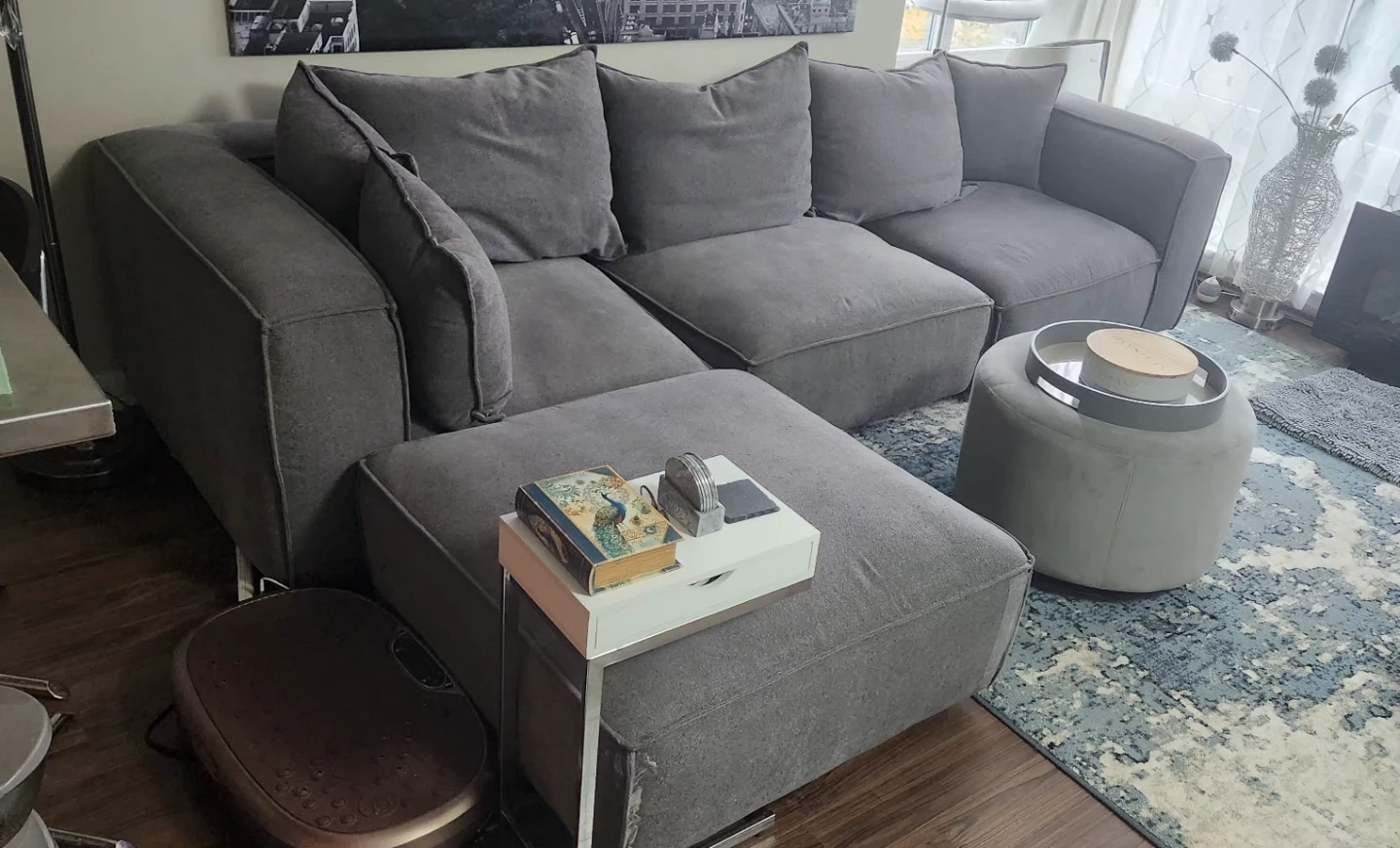 Grey Sectional Sofa with Chaise Lounge & Pullout Bed