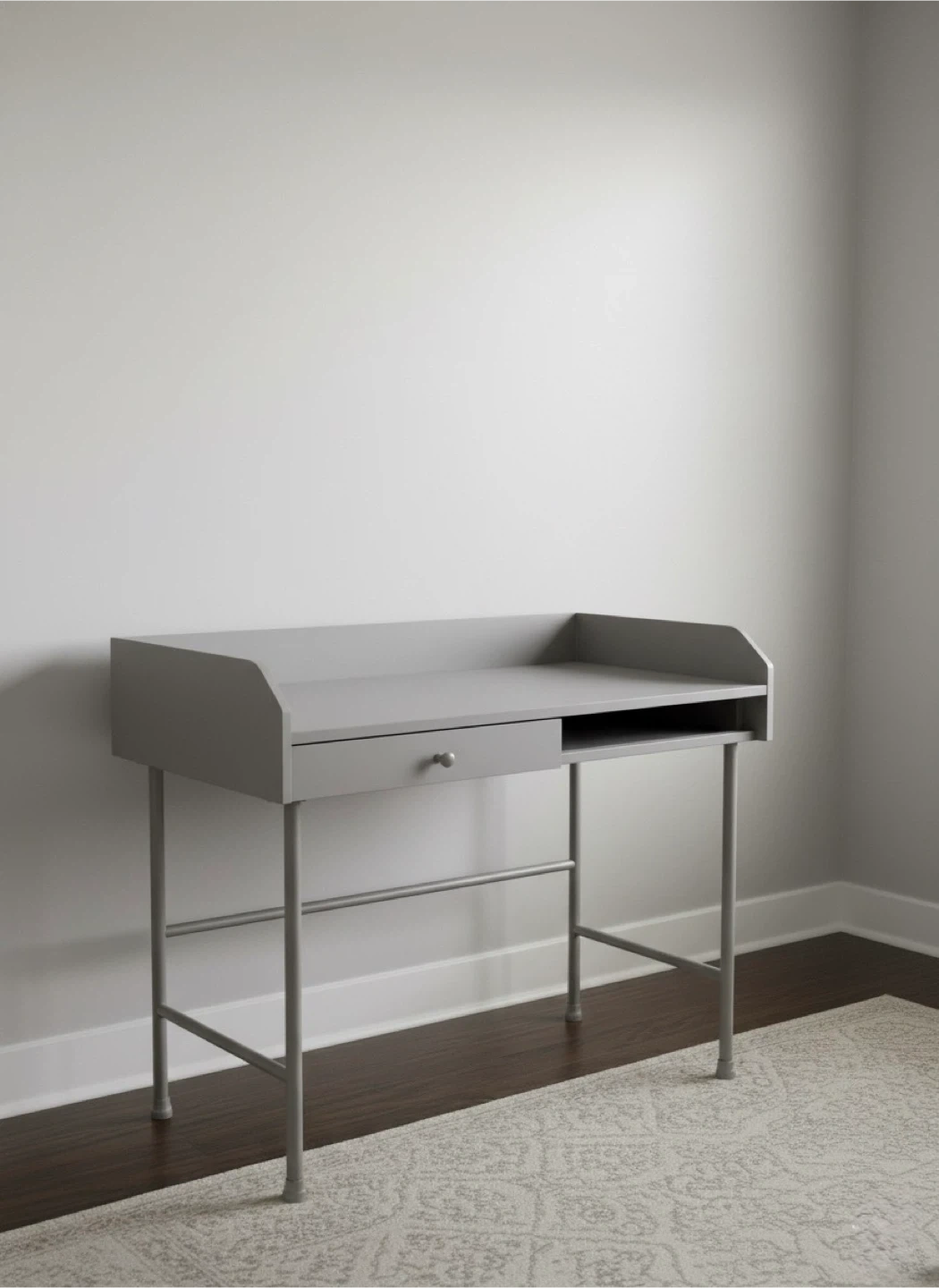 18Selling a simple grey desk, perfect for a small space or home office. It features a drawer for storage and a clean, minimalist design that would fit well in any room. Great condition! Original Price: $199+Tax (IKEA)