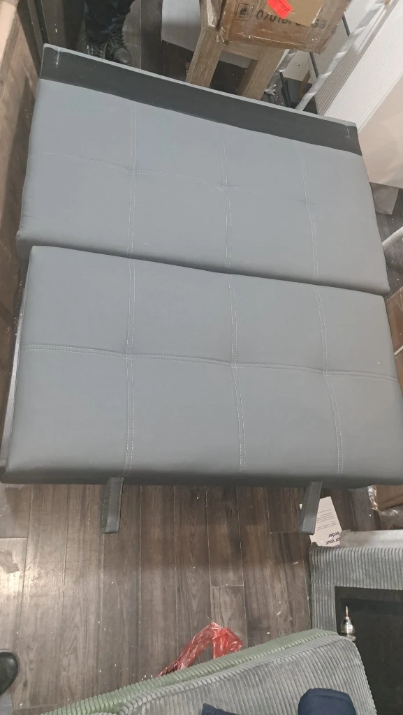 54Selling a grey ottoman storage bench. It's in great shape and measures approximately 32 inches in width and 57 inches in length. Perfect for adding extra storage and seating to any room!