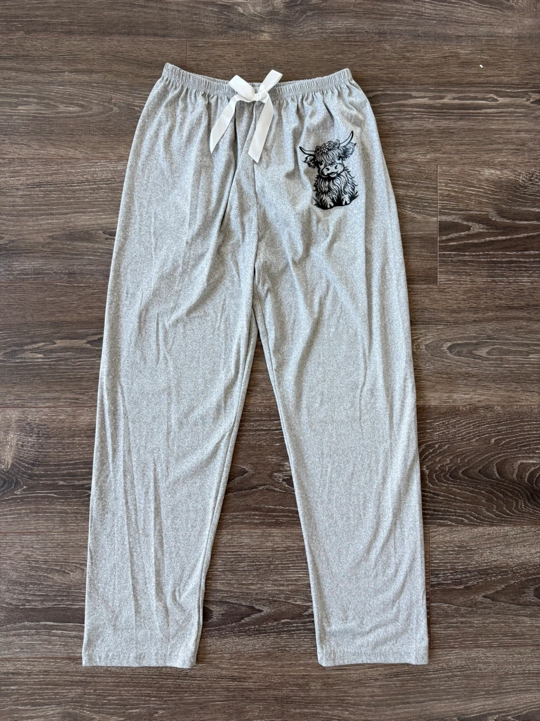 Cozy up with these comfy grey pajama pants! They feature a cute Highland cow graphic and a drawstring waist for a perfect fit. Great for lounging around the house or a good night's sleep $5 minimum spend to arrange pick up🙂