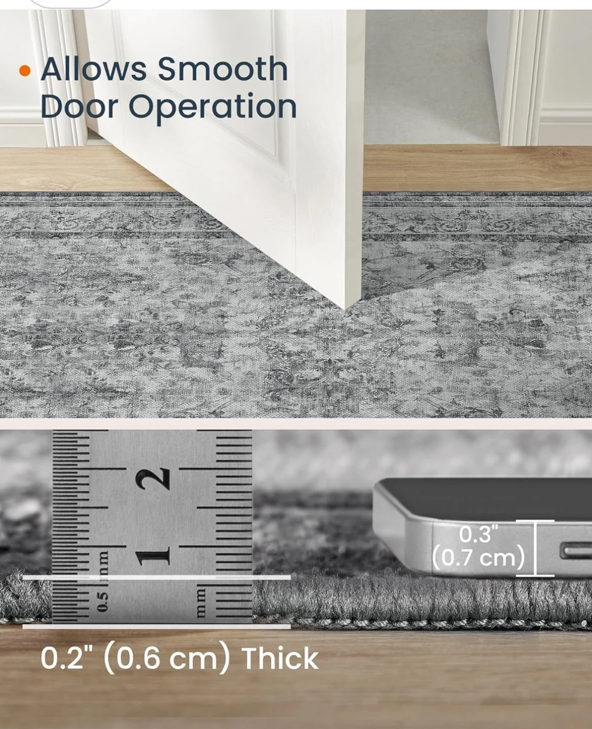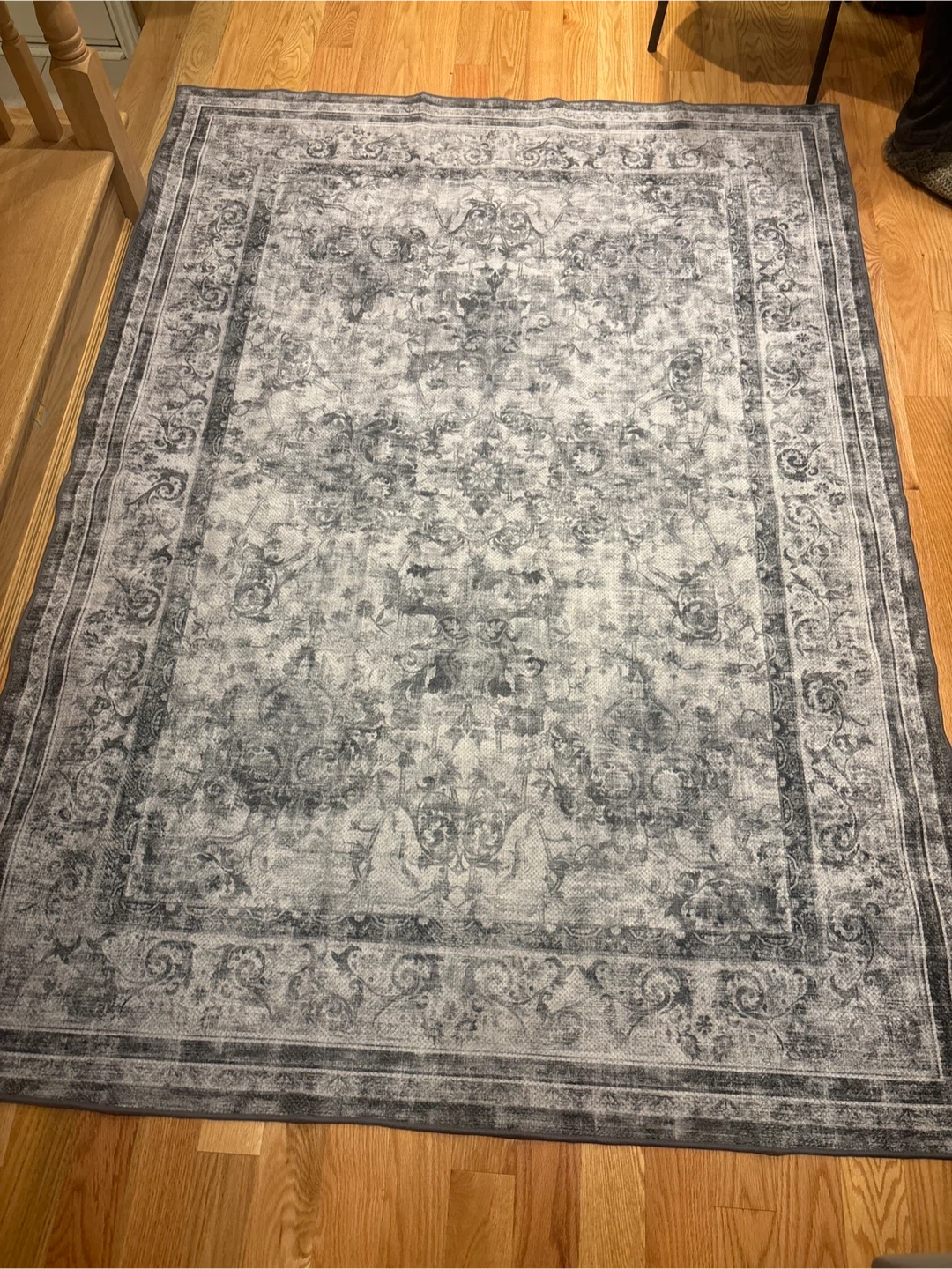 202Selling a lovely grey patterned area rug. The rug is 0.2 inches (0.6 cm) thick, providing a comfortable feel underfoot and allows smooth door operation. Can be used in living room, bedroom, dinning room . Entryway . Available for pickup and delivery